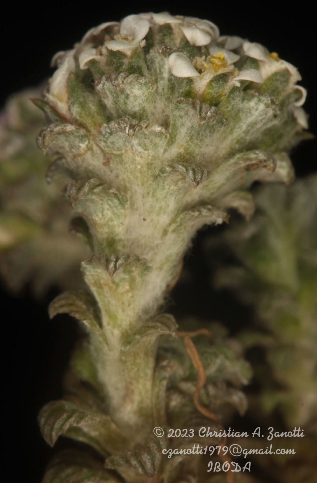 Sufrútices de 15-20 cm de alto, con numerosos tallos rastreros o ascendentes, densamente cubiertos de hojas hasta el ápice. Hojas imbricadas, recurvadas, anchamente ovadas u ovadolanceoladas, de 6-10 × 4-7 mm, envainadoras, recorridas por costillas paralelas apretadas, terminadas en dientes mucronados, entre las cuales hay pelos sedosos, densamente velludas o seríceo-pubescentes en el envés. Capítulos muy numerosos, dispuestos en glomérulos globosos muy densos, rodeados de hojas recurvadas. Involucro de 8-10 mm de alto; filarios velludos, los externos lineares, los internos lanceolados, agudos. Flores 5, corola blanca, 8-10 mm de largo. Aquenios glabros. Papus formado por 3-6 pajitas lineares, ciliadas en el margen, blancas, caedizas.