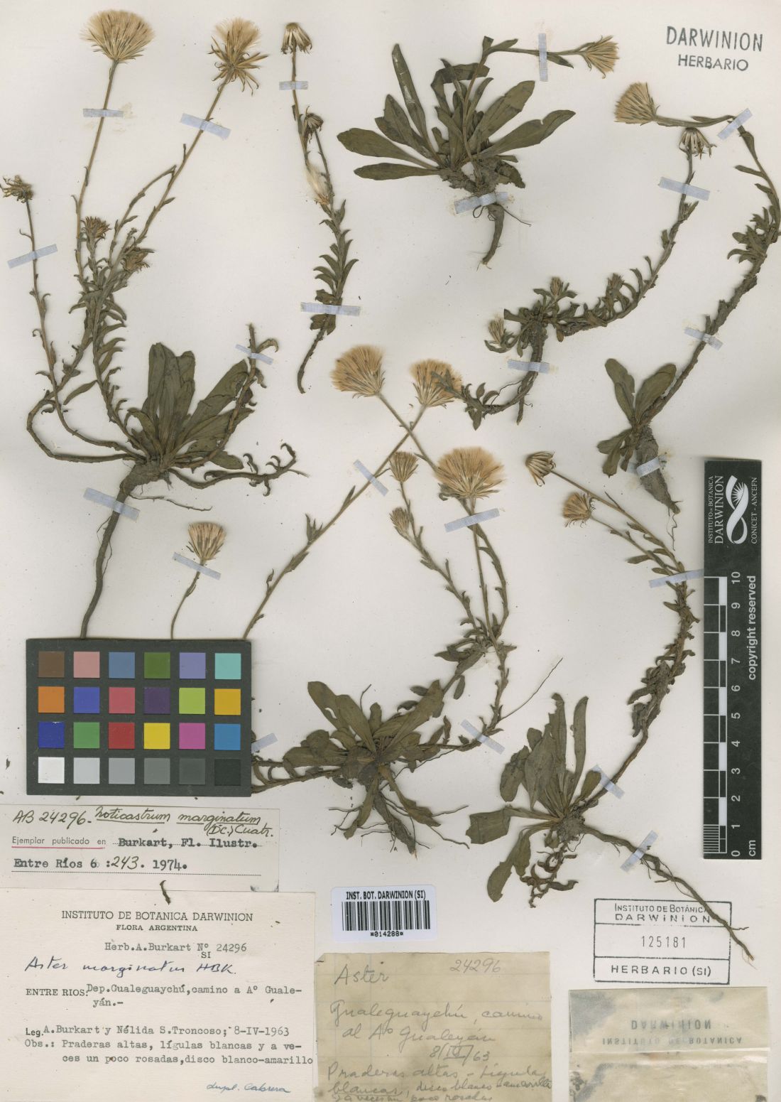 Hierbas perennes, rizomatosas, hasta de 50 cm de largo, con varios tallos simples, hojosos, tendidos y erectos en el ápice o erectos, laxamente hirsutos. Hojas inferiores rosuladas, obovadas, de 40-130 × 6-20 mm, base semiabrazadora, largamente atenuada en pseudopecíolo, ápice subobtuso, margen entero o remotamente serrado, glabras o hirsutas; hojas superiores esparcidas, oblongas u ovadas, de 7,5-50 × 2-15 mm, base suavemente atenuada, semiabrazadora, ápice agudo, margen entero. Capítulos solitarios o pocos (2 ó 4), cortamente radiados, pedunculados, de 15-17 × ca.15 mm. Involucro acampanado; filarios graduados, dispuestos en 3-5 series, linear-ovados, de 5- 13 × 1-2 mm, agudos, subglabros, ciliados en el margen. Flores del margen con corola blanca o rosada, de 5-11 mm de largo, limbo de 3,5-7 × ca. 15 mm; flores del centro con corola de 5-8,5 mm de largo. Aquenios elipsoides, de 4-5 × 1-1,5 mm, seríceos, a veces glandulosos. Papus pajizo, ca. 10 mm de largo.