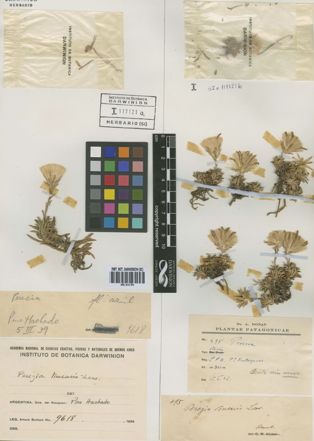 Material Tipo: Chile. Prov. BioBío, in Chili austr. camp. lapidos, et rupestrib. convall. Antucensis, E. Poeppig 767 (lectotipo, P!, designado por Vuilleumier, 1969: 146, foto LP!; isolectotipos, F, foto LP!, B, destruido, foto F-16078 en LP!, SGO!)