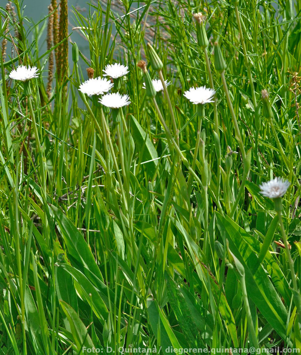 Hierbas erectas, verdes, con raíces gemíferas, hasta de 80 cm de alto; tallos simples o poco ramificados, glabros, laxamente hojosos. Hojas basales oblanceoladas, de 6-50 × 8-30 cm, base atenuada, ápice agudo, margen entero o con pocos dientes, glabras; hojas caulinares gradualmente menores, lanceoladas, dilatadas y semiabrazadoras en la base, ápice atenuado, enteras. Capítulos solitarios. Involucro de 14-25 × 6-10 mm, con ca. 8 filarios lanceolados, de ápice agudo, glabros. Flores con corola blanca, ligulada, 5-dentada en el ápice. Aquenios fusiformes, ca. 16 mm de largo, costados, rostrados y glabros. Papus amarillento, de 10-12 mm de largo.