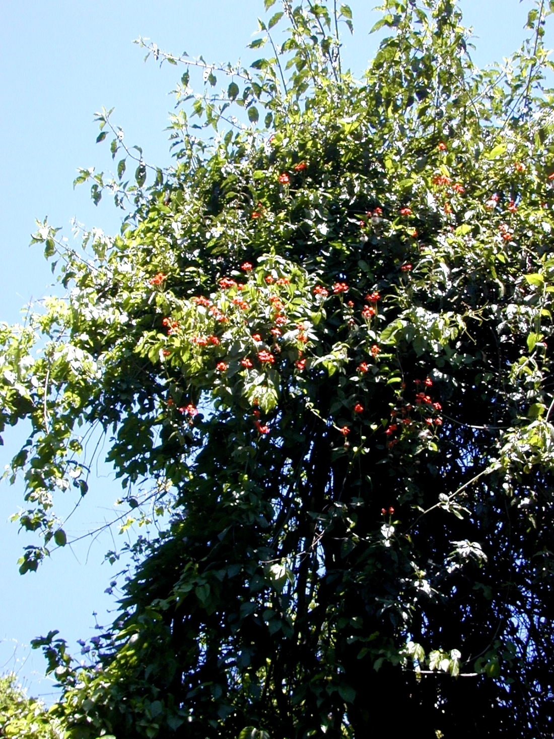 Arbustos apoyantes o volubles, de 2-4 m de alto, glabros o pubérulos. Tallos laxamente hojosos. Hojas largamente pecioladas; pecíolos de 1-3 cm de largo; láminas ovadas, de 6-10 × 3-7 cm, redondeadas o cordadas en la base, acuminadas en el ápice, dentadas en el margen, puberulentas o glabras en ambas caras. Capítulos radiados, largamente pedunculados, solitarios o en cimas de 2-5 en los ápices de los tallos. Involucro acampanado, de 10-12 × 12-15 mm, caliculado; filarios 20-22, linearoblongos, agudos en el ápice, glabros en el dorso; brácteas del calículo numerosas, lineares, pubérulas, alcanzando la mitad del involucro. Flores con corolas anaranjado-intenso o rojo, las del margen con lígula elíptica, de 10-12 × 3,5 mm, las del centro numerosas, con corola tubulosa. Aquenios pubescentes, ca. 4 mm de largo. Papus blanco..