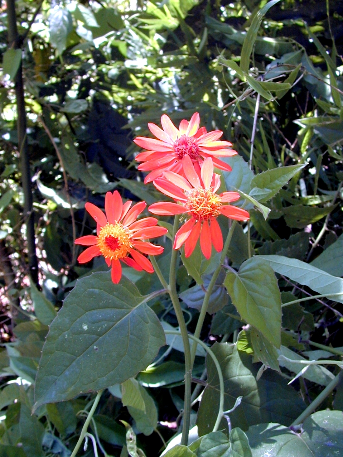 Arbustos apoyantes o volubles, de 2-4 m de alto, glabros o pubérulos. Tallos laxamente hojosos. Hojas largamente pecioladas; pecíolos de 1-3 cm de largo; láminas ovadas, de 6-10 × 3-7 cm, redondeadas o cordadas en la base, acuminadas en el ápice, dentadas en el margen, puberulentas o glabras en ambas caras. Capítulos radiados, largamente pedunculados, solitarios o en cimas de 2-5 en los ápices de los tallos. Involucro acampanado, de 10-12 × 12-15 mm, caliculado; filarios 20-22, linearoblongos, agudos en el ápice, glabros en el dorso; brácteas del calículo numerosas, lineares, pubérulas, alcanzando la mitad del involucro. Flores con corolas anaranjado-intenso o rojo, las del margen con lígula elíptica, de 10-12 × 3,5 mm, las del centro numerosas, con corola tubulosa. Aquenios pubescentes, ca. 4 mm de largo. Papus blanco..