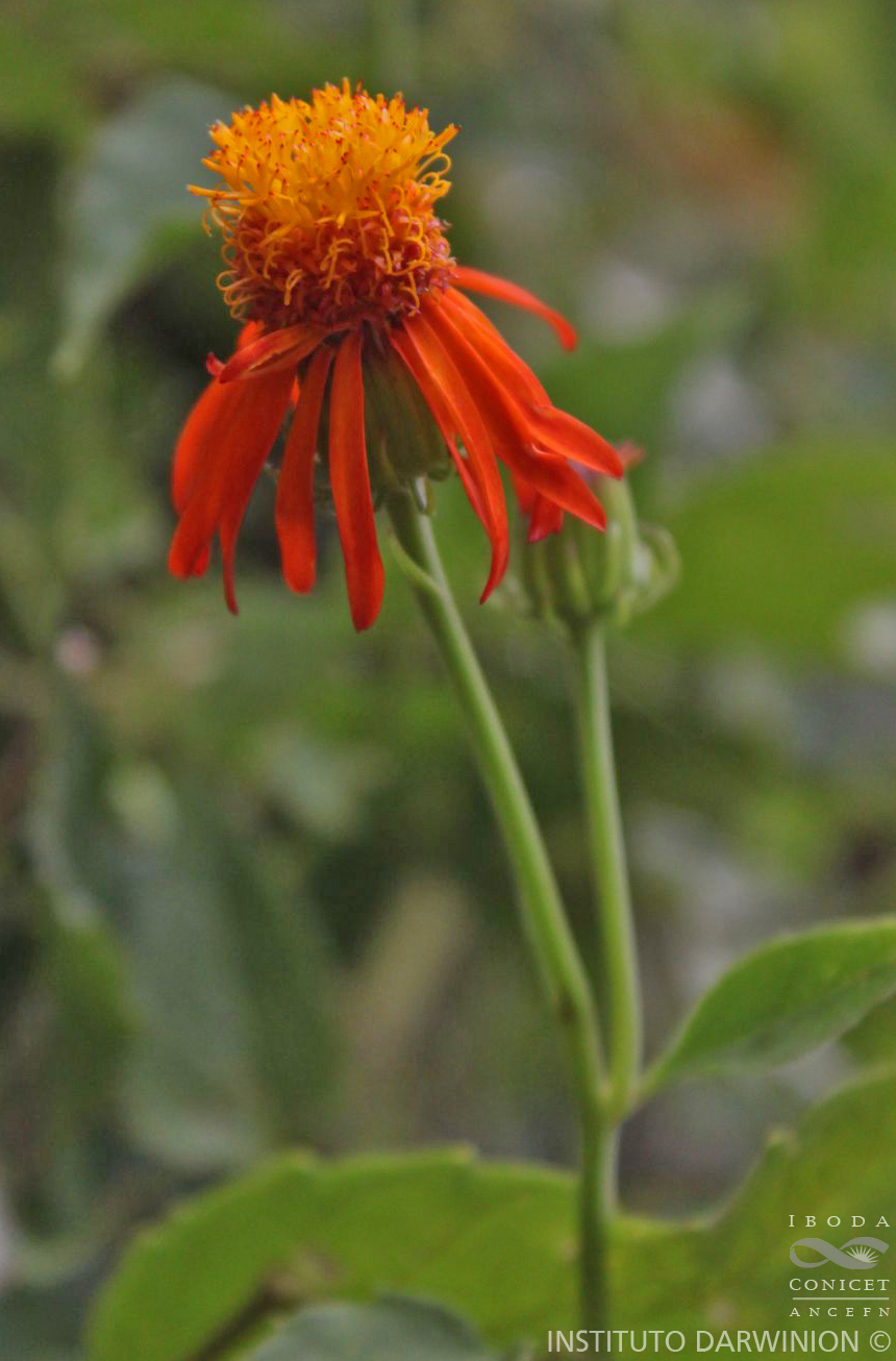 Arbustos apoyantes o volubles, de 2-4 m de alto, glabros o pubérulos. Tallos laxamente hojosos. Hojas largamente pecioladas; pecíolos de 1-3 cm de largo; láminas ovadas, de 6-10 × 3-7 cm, redondeadas o cordadas en la base, acuminadas en el ápice, dentadas en el margen, puberulentas o glabras en ambas caras. Capítulos radiados, largamente pedunculados, solitarios o en cimas de 2-5 en los ápices de los tallos. Involucro acampanado, de 10-12 × 12-15 mm, caliculado; filarios 20-22, linearoblongos, agudos en el ápice, glabros en el dorso; brácteas del calículo numerosas, lineares, pubérulas, alcanzando la mitad del involucro. Flores con corolas anaranjado-intenso o rojo, las del margen con lígula elíptica, de 10-12 × 3,5 mm, las del centro numerosas, con corola tubulosa. Aquenios pubescentes, ca. 4 mm de largo. Papus blanco..