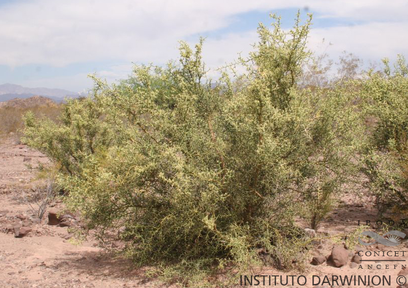Especie endémica de la Argentina de la provincia fitogeográfica del Monte. Habita quebradas secas y es frecuente en planicies aluviales, entre los 800-2000 m s.m.