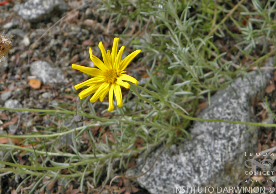 Sufrútices de 15-25 cm de alto, plateado-tomentosos; tallos ascendentes, ramosos, simples o poco divididos, densamente hojosos en la base y desnudos en la parte superior. Hojas lineares, de 1,5-3 cm × 1-2 mm, obtusas en el ápice, enteras y revolutas en el margen. Capítulos radiados o discoides, solitarios en el ápice de las ramas. Involucro acampanado, de 7-12 × 8-10 mm, muy brevemente caliculado; filarios ca. 20, lineares, agudos y penicilados en el ápice, tomentosos en el dorso. Flores dimorfas o isomorfas, con corolas amarillas, cuando dimorfas con 10-13 flores del margen, liguladas, con lígula elíptica de unos 10 × 2,5 mm y flores del centro numerosas, con corolas tubulosas de unos 8 mm de largo, 5-lobadas, lóbulos ca. 0,8 mm de largo. Aquenios cilindroides, ca. 5 mm de largo, costados, cortamente papilosos. Papus blanco ca. 10 mm de largo.