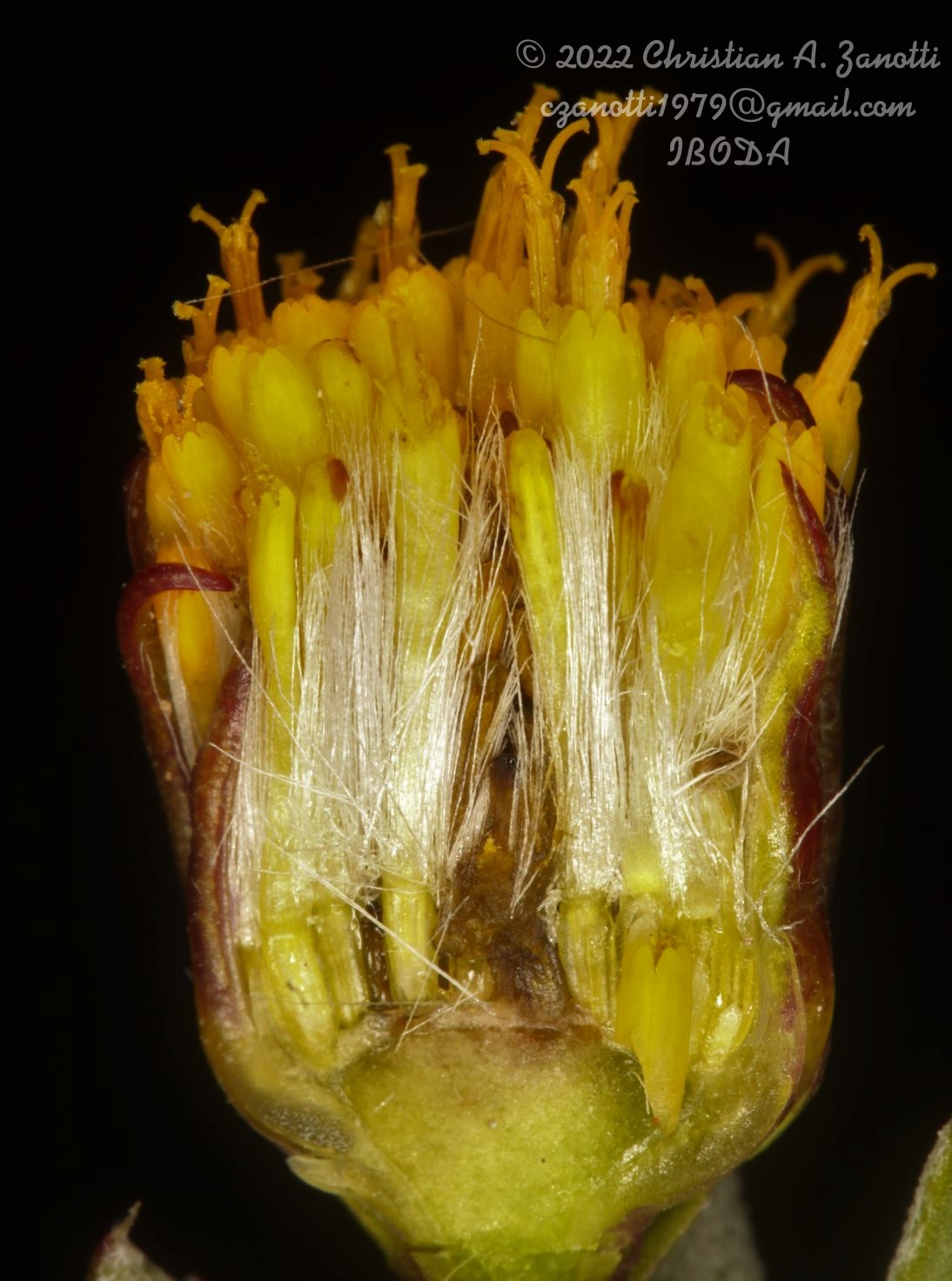 Sufrútices ramosos, de 8-18 cm de alto, laxamente araneoso-tomentosos; tallos erectos o ascendentes, hojosos hasta el ápice. Hojas oblongo-lineares, de 1-2 cm × 1-1,5 mm, agudas en el ápice y enteras en el margen, algo carnosas. Capítulos discoides, agrupados de a 1-4 en los extremos de las ramitas; pedúnculos bractéolados de 8-20 mm de largo. Involucro acampanado, de 7-8 × 7-9 mm; brácteas del calículo pocas, lineares; filarios 10-15, linear-lanceolados, con 1 ó 2 bolsas oleíferas longitudinales, lanuginosos o glabros. Flores isomorfas, numerosas, con corolas amarillas, tubulosas, ca. 4,5 mm de largo, 5-lobadas, lóbulos ca. 0,5 mm de largo. Aquenios cilindroides, costados, glabros. Papus blanco.