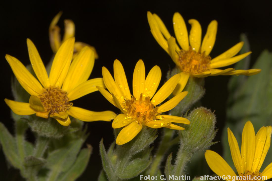 Sufrútices ramosos en la base, de 30-50 cm de alto, densamente glanduloso-flocosos; tallos erectos, hojosos hasta la inflorescencia. Hojas oblanceoladas, de 5-10 × 0,6-2 cm, atenuadas en la parte inferior, ensanchadas y auriculadas en la base, agudas en el ápice, uniformemente dentadas en el margen. Capítulos radiados, pocos, dispuestos en cimas corimbiformes laxas, terminales. Involucro acampanado, ca. 12 × 9-10 mm; brácteas del calículo lineares, casi tan largas como el involucro, glanduloso-pubescentes en el dorso; filarios ca. 20, lineares, atenuados en el ápice, densamente glanduloso-flocosos en el dorso. Flores dimorfas, numerosas, las del margen 12-15, con corolas amarillas, liguladas; las del centro numerosas, con corolas tubulosas, de 6-7 mm de largo, 5-lobadas. Aquenios cilindroides, ca. 3 mm de largo, con pelitos cortos entre las costillas. Papus blanco ca. 7 mm de largo.