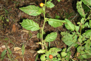 Subarbustos bajos, de (30-)50-80 cm de alto, con rizomas horizontales; tallos delgados, decumbentes, cubiertos de tricomas simples, bifurcados y dendríticos, principalmente en las partes más jóvenes. Unidades simpodiales 3-foliadas, con un par de hojas geminadas, marcadamente anisófilas o simpodios 2-foliados con una de las dos hojas mucho menor y opuesta a la inflorescencia. Hojas membranáceas, delicadas, glabrescentes, con escasos tricomas simples o bifurcados en la cara superior y con tricomas dendríticos sobre los nervios del hipofilo y pecíolos; hojas mayores con pecíolos de 6-8 mm, láminas ovadas, de 6- 10,5 × 3-4,5(-5) cm, base atenuada, ápice agudo; hojas menores sésiles, diminutas, láminas ovadas a suborbiculares; hojas de tamaño intermedio opuestas a la inflorescencia, con pecíolos de 2-4 mm, láminas ovadas o suborbiculares, de 2,5-3 × 2-2,5 cm. Inflorescencia sésil o apenas pedunculada, hasta con 7(-8) flores. Pedicelos erectos o reflexos, de 4-8 mm; cáliz de 3,3-4,7(-5) mm, pubescente, con tricomas dendríticos, lóbulos subiguales, uno de mayor tamaño, de 2-3,2 mm y los menores de 1,4-2 mm, tubo de 1,2-1,5 mm; corola estrellada, íntegramente blanca, lóbulos erectos, luego reflexos, ovados, de 3,5-5 mm, tubo de 1-3 mm; estambres con filamentos glabros, con una porción libre y una porción fusionada formando un anillo estaminal, este anillo presenta a su vez una parte libre de 0,1-0,5 mm de alto, y una parte soldada a la corola, de 0,5-1 mm de alto, anteras poricidolongitudinales, de 2,5-3 mm, de color amarillo intenso; gineceo muy exerto, ovario cónico, glabro, estilo ligeramente curvado, de 4,6-5,5 mm, glabro, estigma capitado. Baya 1-2 por nudo, esférica, de 1,2-1,5 cm de diámetro, verde cuando inmadura, anaranjada a la madurez; pedicelos fructíferos engrosados, erectos, rectos o ligeramente arqueados, de 7-13 mm; semillas aplanadas, reniformes, de 2,5-3 × 2 mm, de color castaño brillante, células del episperma fuertemente onduladas.