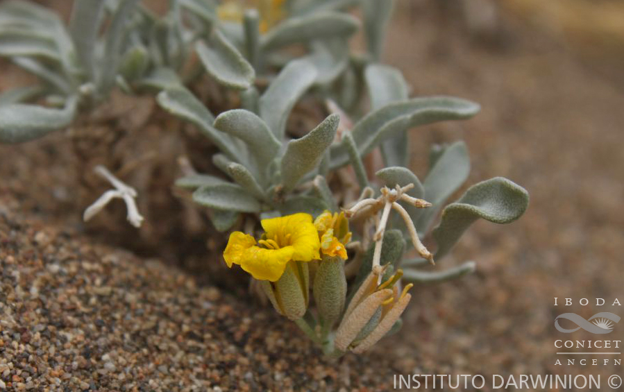 Hierbas perennes, no pulviniformes, escasa a densamente pubescentes, con tricomas estrellados, argénteos; cáudice delgado o robusto, leñoso, simple, rara vez poco ramificado, ocasionalmente con remanentes de hojas de años anteriores. Tallos pocos a numerosos, procumbentes a decumbentes, naciendo desde el exterior de la roseta, de (3-)4-24 cm de alto. Hojas basales con pecíolos de 0,5-1,5(-3) cm de largo; láminas oblanceoladas, rara vez linear-oblanceoladas o espatuladas, de 1,5-3,5 cm × 3-7 mm, base atenuada a cuneada, ápice agudo a subobtuso, margen entero; hojas caulinares de 3-11(-16) cm de largo, ± dispuestas hacia un único lado del eje, linear a estrechamente oblanceoladas, subsésiles, base atenuada, ápice subagudo, margen entero. Racimos (5-)7-20(-27)-floros, alargados durante la fructificación; pedicelos fructíferos rectos o curvados hacia adentro, muy rara vez sigmoides, divaricados o ascendentes, densamente pubescentes, delgados, de 5-10 mm de largo. Sépalos estrechamente oblongos, de 4-6 × 1,5-2 mm, caducos, no sacciformes en la base, con pubescencia argéntea; pétalos amarillo pálidos a amarillo brillantes, rosados o purpúreos cuando secos, obovados, de 7-11 × 3-5 mm, ápice redondeado; anteras oblongoides, de 1-1,5 mm de largo; filamentos de 4-5,5 mm de largo; óvulos 4-10. Frutos globosos, ovoides a subelipsoides, de (3,5-)4-7 × 3-5(-6) mm, teretes, escasamente pubescentes, sésiles o sobre un ginóforo hasta de 0,5 mm de largo, base y ápice obtuso; estilo delgado, de (2,5-)3-5(-6) mm de largo, glabro o escasamente pubescente en la base; estigma ligeramente más ancho que el estilo. Semillas comprimidas, ovoides a ovoideoorbiculares, no aladas, de 1,8-2,5 × 1,2-2 mm; cotiledones acumbentes.