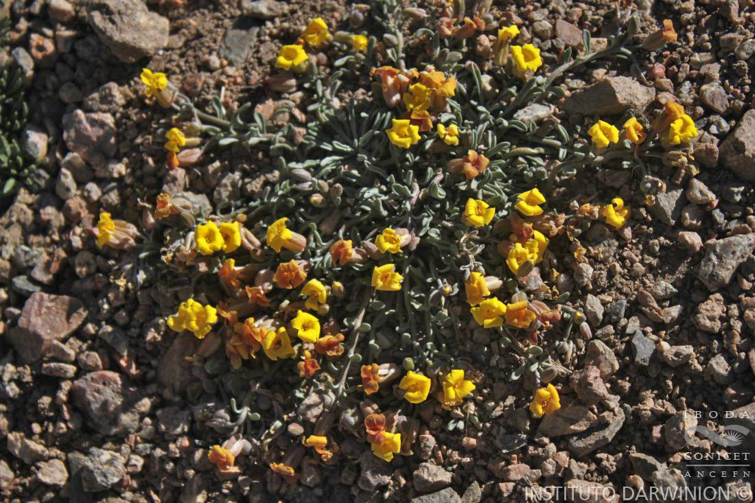 Hierbas perennes, no pulviniformes, escasa a densamente pubescentes, con tricomas estrellados plateados; cáudice a menudo robusto, leñoso, simple, rara vez ramificado, por lo general con remanentes de hojas de años anteriores. Tallos pocos a numerosos, procumbentes o decumbentes, de 2-18(-23) cm de alto. Hojas basales con pecíolos de 0,7-2 cm de largo; láminas oblanceoladas, rara vez linear-oblanceoladas, de 1-2,7 cm × 2-6 mm, base atenuada a cuneada, ápice obtuso a subagudo, margen dentado a ondulado-denticulado; hojas caulinares de (3-)5- 13(-15) de largo, espiraladas o unilaterales, lineares a linearoblanceoladas, subsésiles o cortamente pecioladas, base cuneada a atenuada, ápice obtuso o agudo, margen ondulado o entero. Racimos 5-10(-18)-floros, ligeramente alargados durante la fructificación; pedicelos fructíferos fuertemente sigmoides, divaricados o rara vez ascendentes, densamente pubescentes, delgados, de (5-)6-12(-17) mm de largo. Sépalos estrechamente oblongos, de 5-7 × 1,5-2 mm, caducos, no sacciformes en la base, con pubescencia plateada; pétalos amarillo pálido a amarillo brillante, rosados o purpúreos al secarse, obovados, de 9-11 × 4-5 mm, ápice redondeado; anteras oblongoideas, de 1-1,5 mm de largo, filamentos de 4-5 mm de largo; óvulos 8-16. Frutos subglobosos, subinflados, más anchos que largos, de 4,5-6 × 5- 8 mm, teretes, escasamente pubescentes, sésiles o sobre un ginóforo hasta de 0,5 mm de largo, base subcordada a obtusa, ápice subemarginado a subtruncado; estilo robusto, de 0,7-1,5 mm de largo, glabro; estigma ampliamente capitado, considerablemente más ancho que el estilo, a veces tan ancho como la longitud del estilo. Semillas comprimidas, ovoideas a ovoideo-orbiculares, no aladas, de 2-2,5 × 1,5-2 mm; cotiledones acumbentes.