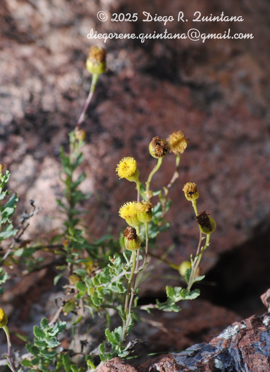 Sufrútices enanos, de 12-30 cm de alto, ramosos en la base, glabros; tallos ascendentes o erectos, densamente hojosos hasta el ápice. Hojas alternas, sésiles, obovado-espatuladas, de 5-14 × 3-6 mm, redondeadas en el ápice, donde llevan 3-5 dientes agudos, crasas, glabras en ambas caras. Capítulos discoides, solitarios en el ápice de los tallos. Involucro acampanado, de 5-7 × 7 mm, apenas caliculado; brácteas del calículo 2-4, cortas, lanceoladas; filarios ca. 13, oblongo-lanceolados, agudos y cortamente penicilados en el ápice y glabros en el dorso. Flores isomorfas, numerosas, con corolas amarillas, tubulosas, de 5-6 mm de largo, 5-lobadas, lóbulos triangulares, ca. 0,5 mm de largo. Aquenios cilindroides, ca. 4 mm de largo, costados, glabros. Papus blanco ca. 5 mm de largo.