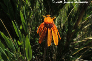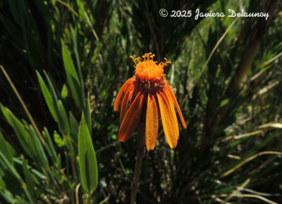 Hierbas perennes, de 50-60 cm de alto, glabras o ligeramente lanosas; tallos erectos, densamente hojosos en la base y casi sin hojas, escapiformes, en la parte superior. Hojas basales subarrosetadas, oblanceolado-espatuladas, de 10-18 cm × 7-10 mm, largamente atenuadas en la base en un pseudopecíolo envainador, obtusas en el ápice, enteras y revolutas en el margen. Capítulos radiados, solitarios en los ápices de los tallos. Involucro acampanado, de 10-13 × 12-15 mm; brácteas del calículo numerosas, agudas, lineares, lanuginosas en el dorso, de 5-6 mm de largo y a veces casi tan largas como el involucro; filarios 20-26, lanceolados, agudos y penicilados en el ápice, glabros o arañentos en el dorso. Flores dimorfas, las del margen 12-16, con corolas anaranjadas, liguladas, lígula elíptica, ca 14 × 3 mm; las del centro numerosas, 80-100, con corolas tubulosas, ca. 9 mm de largo, 5-lobadas. Aquenios cilindroides, ca. 9 mm de largo, 9-10-costados, glabros. Papus blanco ca. 9 mm de largo.