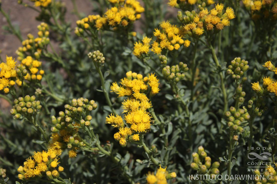 Sufrútices de 50-80 cm de alto, glabros; tallos ascendentes, densamente hojosos en la parte inferior y laxamente en la superior. Hojas alternas, sésiles, oblanceoladas, las inferiores de 15-40 × 3-7 mm, algo angostadas en la base, agudas o subobtusas en el ápice, enteras en el margen, las superiores algo ensanchadas en la base y gradualmente menores. Capítulos discoides, dispuestos en cimas corimbiformes en los extremos de las ramitas; pedúnculos de 3-12 mm de largo. Involucro acampanado, de 6-8 × 8-9 mm; brácteas del calículo diminutas, ovadas, a veces aserradas; filarios 11-13, oblongo-lineares, acuminados y penicilados en el ápice, glabros en el dorso. Flores isomorfas, numerosas, con corolas amarillas, tubulosas, de 5,5-7 mm de largo, cortamente 5-lobadas. Aquenios cilindroides, de 5-6 mm de largo, costados, glabros. Papus blanco de 6-7 mm de largo.