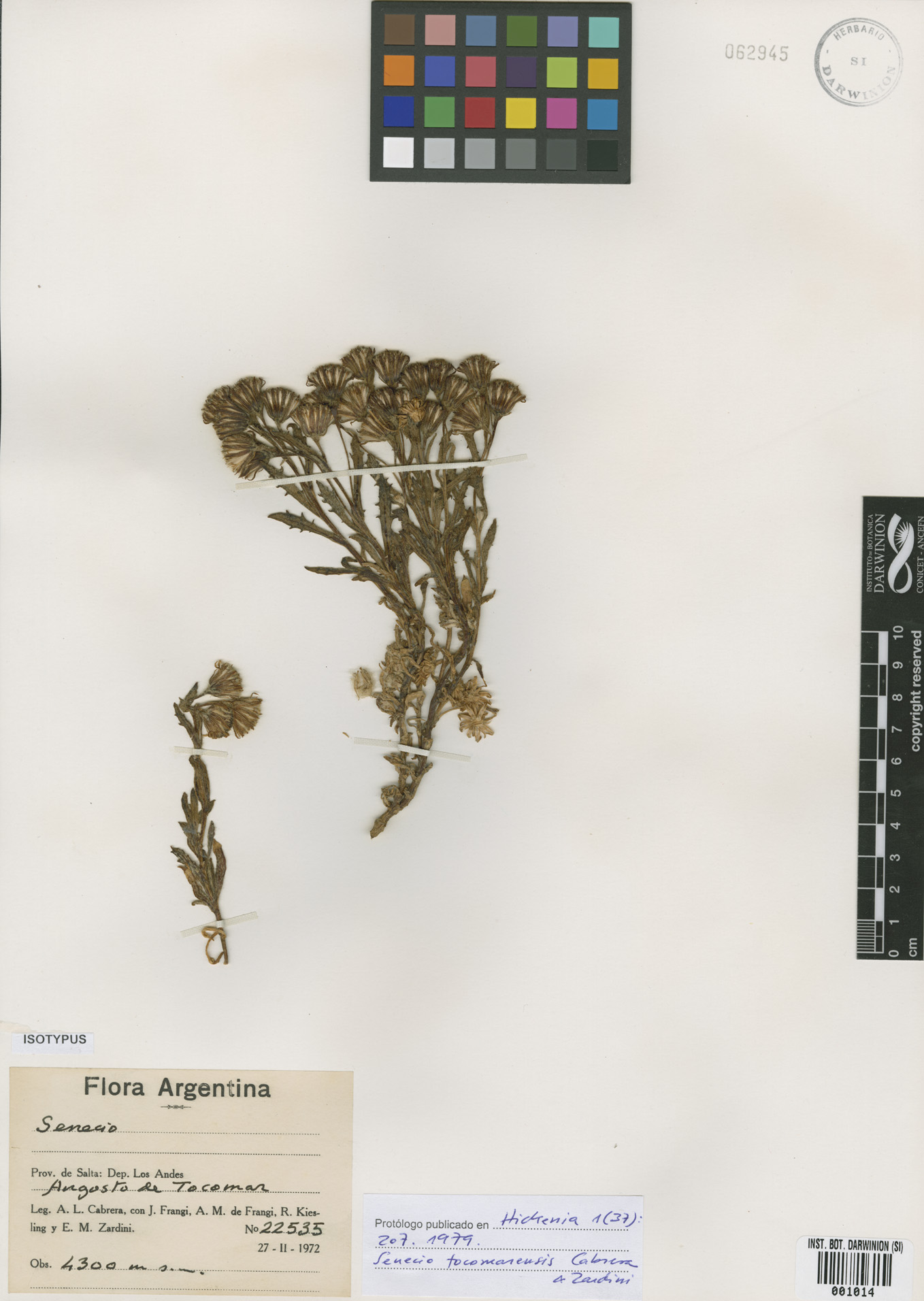 Material Tipo: Argentina. Salta. Dpto. Los Andes: Angosto de Tocomar, 27 Feb 1972, A. L. Cabrera et al. 22535 (holotipo, LP 0000682!; isotipos, SI 001013!, SI 001014!).