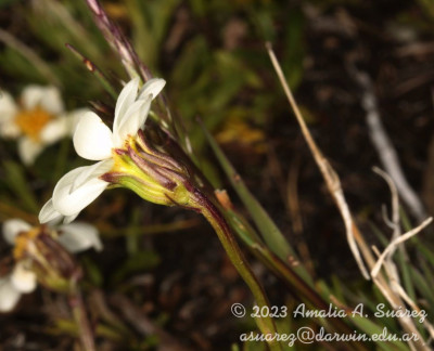 Sur de Chile y Argentina. Vegeta en lugares húmedos de la cordillera austral en la provincia biogeográfica Altoandina. Ha sido hallada alrededor de los mallines y a lo largo de los arroyuelos, entre los 900-1500 m s.m.
