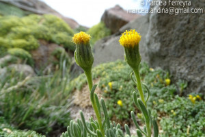Sufrútices bajos, ramosos en la base, de 20-30 cm de alto, densamente glanduloso-hirsutos; tallos ascendentes, densamente hojosos en la parte inferior y casi desnudos, escapiformes, en la superior. Hojas linear-oblongas o linear-espatuladas, de 12-20 × 2-4 mm, ligeramente atenuadas en la base, obtusas en el ápice, enteras o con 1-2 dientes a cada lado en el ápice, crasas y densamente hirsuto-glandulosas en ambas caras. Capítulos discoides, solitarios en el ápice escapiforme de los tallos. Involucro acampanado, de 10-12 × ca. 10 mm, subecaliculado; brácteas del calículo pocas, lanceoladas; filarios 10-15, oblongo-lanceolados, atenuados y penicilados en el ápice, glanduloso-hirsutos en el dorso. Flores isomorfas, numerosas, con corolas amarillas, tubulosas, ca. 10 mm de largo, 5-lobadas, lóbulos ca. 1 mm de largo. Aquenios cilindroides, ca. 6 mm de largo, costados, glabros. Papus blanco ca. 10 mm de largo.