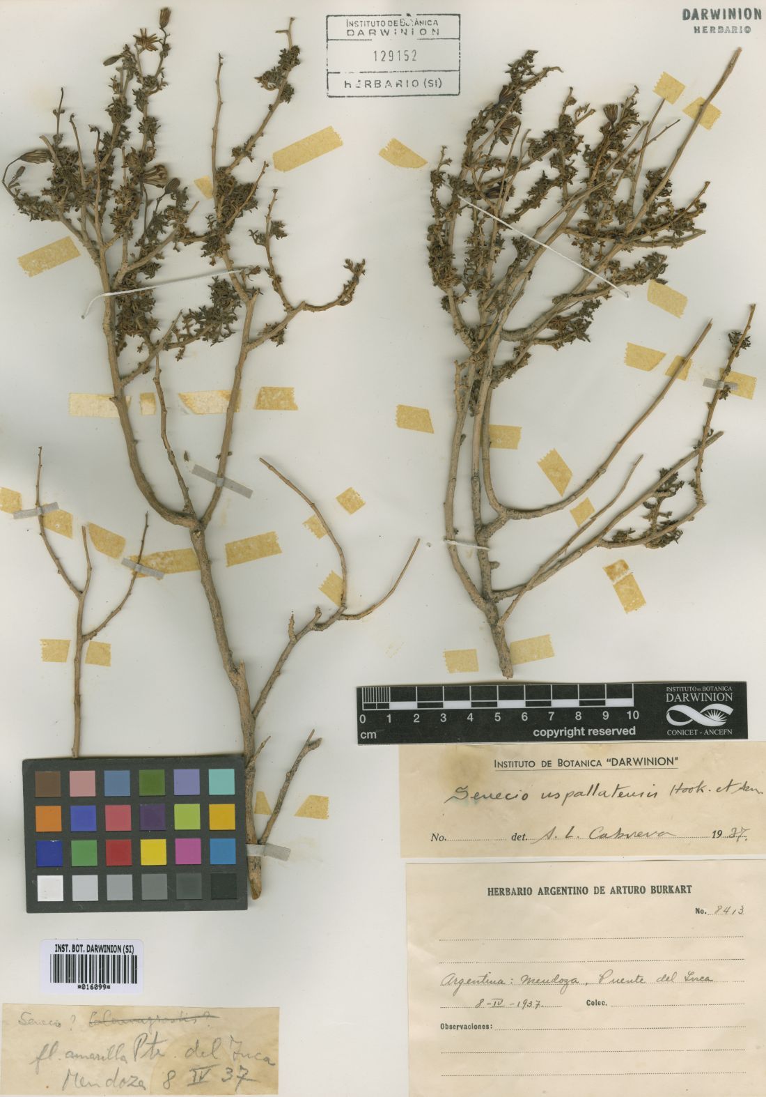 Material Tipo: Argentina. Mendoza. Uspallata, A. Cruckshanks 61 [lectotipo, K 000527585!, designado como “tipo” por A. L. Cabrera, Notas Mus. La Plata, Bot. 1(1): 32. 1935].