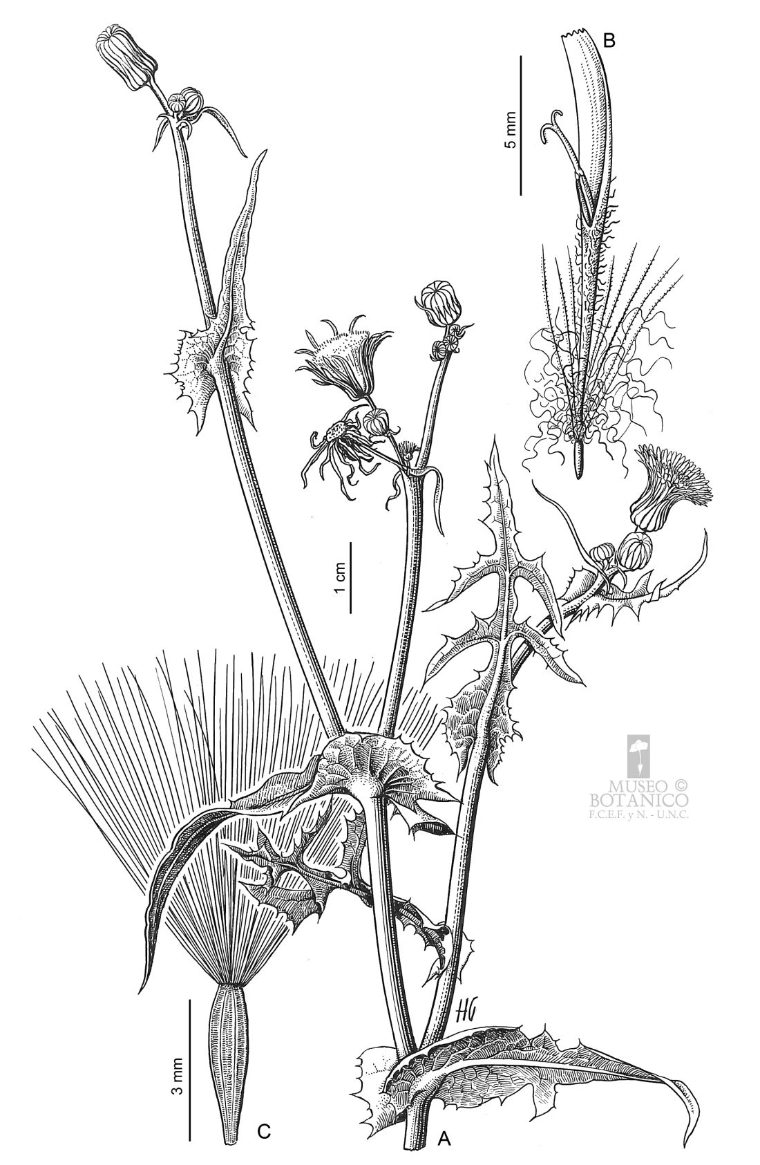 Hierbas anuales, de 10-100 cm alto; tallos erectos, poco ramosos, glabros. Hojas basales de 10-20 cm × 5-8 cm, profundamente runcinadas, con lóbulos dentado-espinulosos, base largamente atenuada y semiabrazadora, ápice agudo u obtuso, glabras; hojas caulinares sésiles, base semiabrazadora, ápice agudo, lobadas o runcinadas, las superiores con aurículas agudas, lobadas o runcinadas. Capítulos largamente pedunculados, dispuestos en cimas corimbiformes o umbeliformes. Involucro acampanado, de 10-12 × 6-8 mm; filarios lanceolados o lineares, semiobtusos, glabros o algo lanuginosos. Flores con corolas amarillas, raro blancas, ca. 15 mm de largo. Aquenios obpiriformes u obovoides, de 3-4 mm de largo, pluricostados, costillas denticuladas transversalmente. Papus blanco, ca. 6 mm de largo.