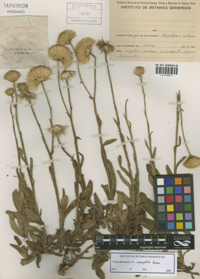 Observaciones: La fotografía 15152 de la Serie Field Museum, en cuya etiqueta se lee «Brasilia, Sello d 241, Herb. Reg. Berolinense», es considerada erróneamente como un fototipo de Stenachaenium campestre.