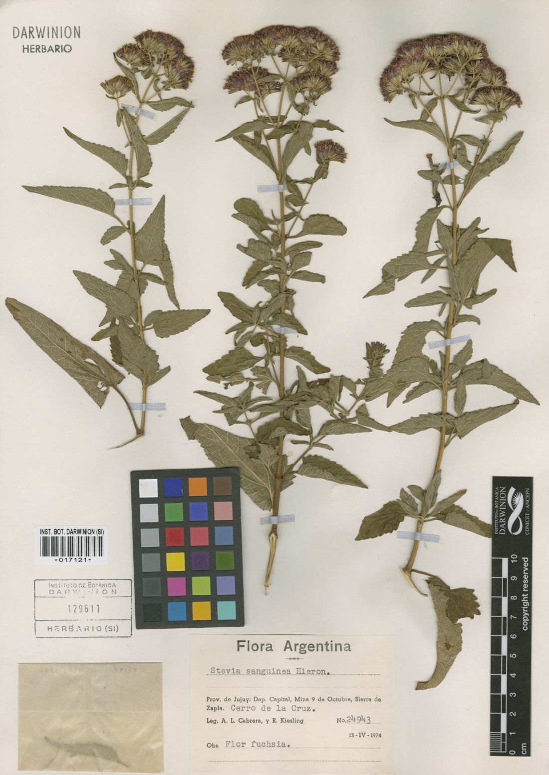 Hierbas perennes hasta de 1 m de alto, con tallos erectos muy ramificados en la parte superior, densamente pubescentes, con pelos blanquecinos curvos o algo crespos. Hojas cortamente pecioladas, ovadas o las inferiores ovado-lanceoladas, de 5-9 × 3-4 cm, truncadas o acorazonadas en la base, agudas en el ápice, uniformemente aserradas, más o menos pubescentes en ambas caras. Capítulos brevemente pedunculados, dispuestos en cimas glomeriformes y formando en conjunto una panoja amplia. Involucro de 5,5-6,5 mm de alto; filarios agudos, con pelos curvos o más raramente con pelitos glandulares capitados. Flores con corolas rosadas o purpúreas con pelos glandulares y no glandulares entremezclados. Papus dimorfo, formado por una corona de pajitas cortas y 1-5 aristas muy cortas en los adelfocarpos y sólo por escamas en los idiocarpos.