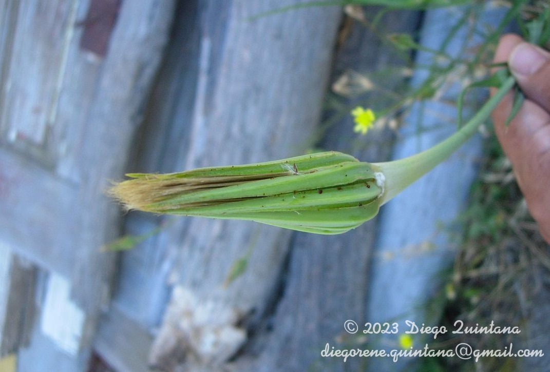 Hierbas anuales o bienales, erectas, ramosas desde la base, de 20-60 cm de alto. Hojas linear a linear-lanceoladas, de 10-25 × 1-2 cm, enteras, poco abrazadoras en la base, ápice largamente acuminado, glabras. Capítulos solitarios, con pedúnculo muy engrosado en el ápice. Involucro cilíndrico-acampanado, de 17- 25 × 22 mm; filarios linear-lanceolados, ápice largamente acuminado. Flores más cortas que el involucro, corolas amarillas, de 14-20 mm de largo. Aquenios fusiformes, de 17-22 mm de largo, costados, con granulaciones sobre las costillas, rostro largo. Papus amarillento, de 22-30 mm de largo.