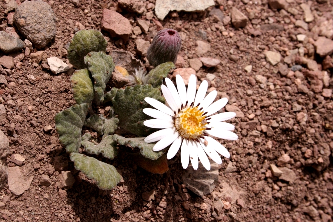 Hierbas perennes, acaules, escapiformes. Hojas arrosetadas, con pecíolos planos de 0,5-2,5(-5) cm de largo, glabrescentes; láminas orbiculares, de 1,3-5 × 1-3 cm, redondeadas en el ápice y en la base, a veces decurrentes en el pecíolo, crenadas y algo revolutas en el margen, coriáceas, blanco-tomentosas en la cara inferior y glabras, rugosas y a veces glandulosas en la superior. Capítulos solitarios en el extremo de escapos de 2-10 cm de largo, glabrescentes, sin brácteas o con 1-2 brácteas hacia el ápice. Receptáculo subalveolado. Involucro hemisférico, de 10- 12 × 15-30 mm; filarios imbricados, 3-4-seriados, los externos gradualmente más cortos, todos ellos linear lanceolados, atenuados en el ápice, tomentosos en el dorso, escariosos en el margen y glabros, más oscuros en la vena media, a veces subglabros. Flores del margen 18-30, con corola amarilla, anaranjada o blanca y lilacina o morada en la cara externa, bilabiado-ligulada, tubo de 4-6 mm de largo, labio externo liguliforme, 3-dentado en el ápice, de 7-13 × 1,5-4 mm, comúnmente tomentoso en la cara externa, labio interno reducido a 2 segmentos filiformes y enroscados; flores del centro numerosas, con corolas amarilla, bilabiada, tubo de 6-9 mm de largo, labios de 1-1,5 mm de largo, el externo 3-dentado y el interno 2-secto. Aquenios obovoides o elipsoides, ca. 6 mm de largo, truncados en el ápice, cortamente pubescentes. Papus blanco con cerdas escabrosas, barbeladas hacia el ápice, ca. 10 mm de largo.