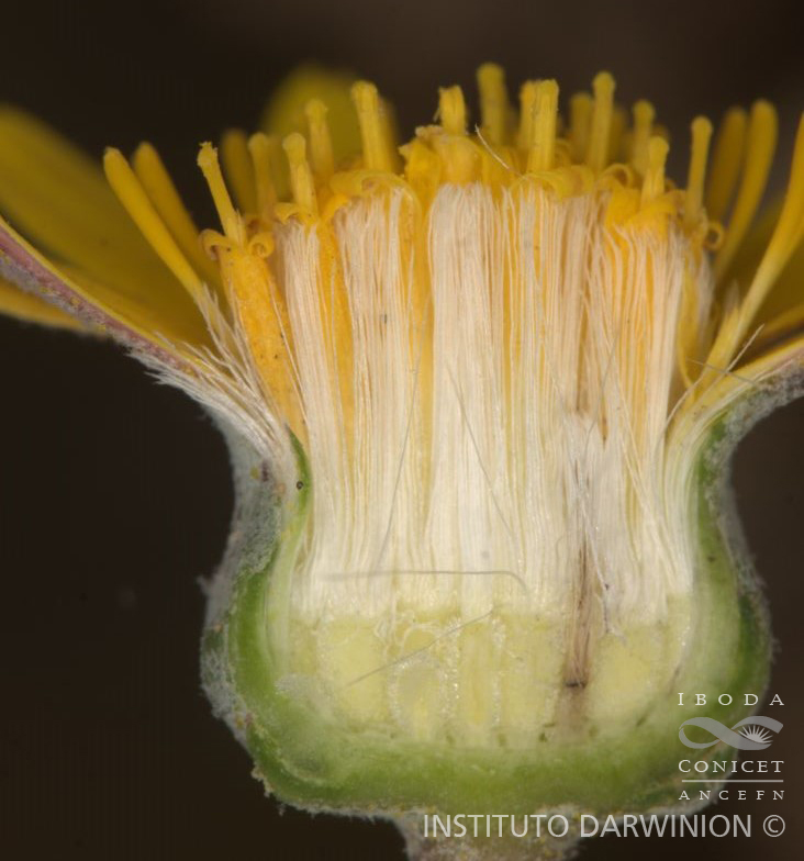 Hierbas perennes, acaules, escapiformes. Hojas muy pequeñas, arrosetadas, atenuadas en un pseudopecíolo hasta de 3 cm de largo; láminas obovadas o espatuladas, de 4-12 × 2-6 mm, obtusas en el ápice, irregularmente crenadas en el margen, glabras o subglabras en la cara superior, blanco-tomentosas y glanduloso-punteadas en la cara inferior. Capítulos solitarios en el extremo de escapos de 2-6 cm de largo, glabrescentes, sin bráctea, o con 1-2 brácteas hacia el ápice. Receptáculo subalveolado. Involucro hemisférico, de 6-10 × 10-20 mm; filarios imbricados, 3-5-seriados, los externos gradualmente más cortos, todos ellos agudos a atenuados en el ápice, tomentosos en el dorso y glabros en la vena media. Flores del margen con corolas amarilla o blanca, bilabiado-ligulada, tubo de 2-4 mm de largo, labio externo liguliforme, 3-dentado en el ápice, de 6-10 × 1,5-2 mm, tomentoso en la cara externa, labio interno reducido a 2 segmentos filiformes y enroscados; flores del centro numerosas, con corola bilabiada, tubo de 4,5-7 mm de largo, labios de 1 mm de largo, el externo 3-dentado y el interno 2-secto. Aquenios obovoides, ca. 4 mm de largo, truncados en el ápice, cortamente pubescentes. Papus blanco con cerdas escabrosas, barbeladas hacia el ápice, ca. 9 mm de largo.