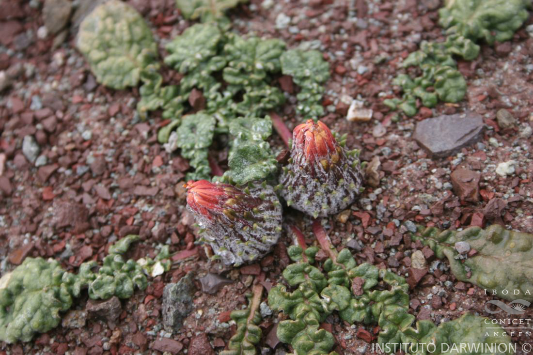 Hierbas perennes, acaules, escapiformes. Hojas arrosetadas, atenuadas en un pseudopecíolo de 2-2,5 cm de largo, tomentoso; láminas lirado-pinnatipartidas, de 3-8 × 1-3,5 cm, con lóbulo terminal ovado u orbicular, obtuso o agudo en el ápice, dentado en el margen, con 3-5 lóbulos laterales, oblongos, crenadodentados en el margen, gradualmente menores hacia la base, tomentosas en la cara inferior y glabras en la superior. Capítulos pocos, 1-3, sésiles en el centro de la roseta de hojas o en el ápice de un escapo breve, hasta de 5 cm de largo, sin brácteas. Receptáculo subalveolado. Involucro hemisférico, de 10-15 × 15-25 mm; filarios imbricados, 3-4-seriados, todos de aproximadamente la misma longitud, los externos foliáceos, estrechamente oblongos, tomentosos en el dorso, los internos, triangular lanceolados, membranáceos, laxamente tomentosos o glabrescentes en el dorso. Flores del margen 18-24, con corola amarilla, rosada o morada, bilabiado-ligulada, tubo de 4-6 mm de largo, labio externo liguliforme, 3-dentado en el ápice, de 10-14 × 1-3 mm, glabro o laxamente tomentoso en la cara externa, labio interno reducido a 2 segmentos filiformes y enroscados; flores del centro numerosas, con corola bilabiada, tubo de 7-9 mm de largo, labios de 1-2 mm de largo, el externo 3-dentado y el interno 2-secto. Aquenios obovoides, ca. 6 mm de largo, truncados en el ápice, cortamente pubescentes. Papus blanco con cerdas escabrosas, brevemente barbeladas hacia el ápice, ca. 10 mm de largo.