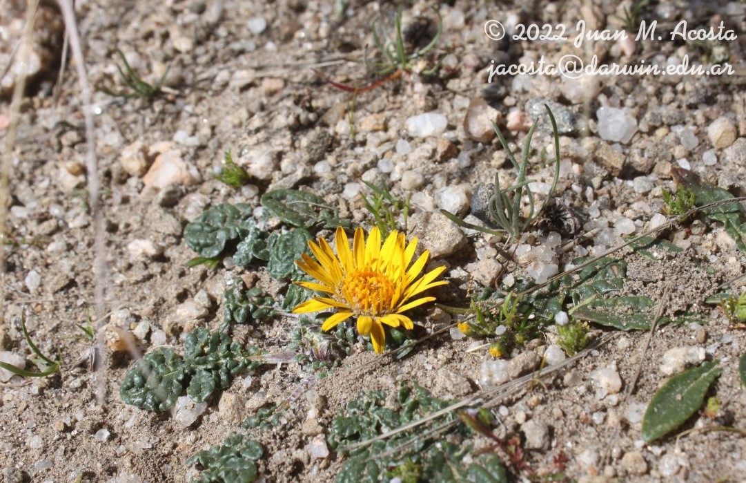Hierbas perennes, acaules, escapiformes. Hojas arrosetadas, atenuadas en un pseudopecíolo de 2-2,5 cm de largo, tomentoso; láminas lirado-pinnatipartidas, de 3-8 × 1-3,5 cm, con lóbulo terminal ovado u orbicular, obtuso o agudo en el ápice, dentado en el margen, con 3-5 lóbulos laterales, oblongos, crenadodentados en el margen, gradualmente menores hacia la base, tomentosas en la cara inferior y glabras en la superior. Capítulos pocos, 1-3, sésiles en el centro de la roseta de hojas o en el ápice de un escapo breve, hasta de 5 cm de largo, sin brácteas. Receptáculo subalveolado. Involucro hemisférico, de 10-15 × 15-25 mm; filarios imbricados, 3-4-seriados, todos de aproximadamente la misma longitud, los externos foliáceos, estrechamente oblongos, tomentosos en el dorso, los internos, triangular lanceolados, membranáceos, laxamente tomentosos o glabrescentes en el dorso. Flores del margen 18-24, con corola amarilla, rosada o morada, bilabiado-ligulada, tubo de 4-6 mm de largo, labio externo liguliforme, 3-dentado en el ápice, de 10-14 × 1-3 mm, glabro o laxamente tomentoso en la cara externa, labio interno reducido a 2 segmentos filiformes y enroscados; flores del centro numerosas, con corola bilabiada, tubo de 7-9 mm de largo, labios de 1-2 mm de largo, el externo 3-dentado y el interno 2-secto. Aquenios obovoides, ca. 6 mm de largo, truncados en el ápice, cortamente pubescentes. Papus blanco con cerdas escabrosas, brevemente barbeladas hacia el ápice, ca. 10 mm de largo.