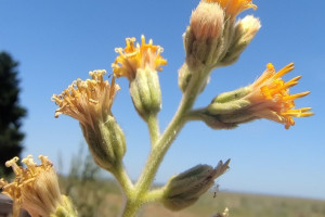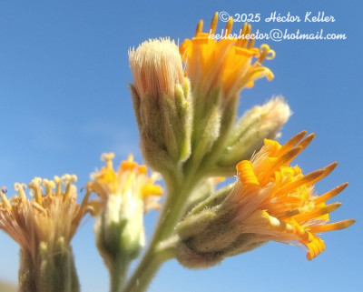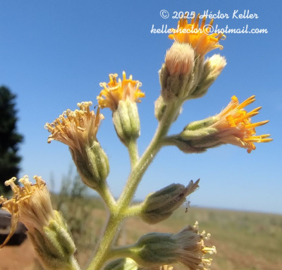 Sufrútices de 50-200 cm de alto; tallos erectos, amarillotomentosos, alados, alas de 2-4 mm de diámetro. Hojas alternas, sésiles, elíptico-lanceoladas, de 5,5-17 × 1-5,2 cm, decurrentes en la base, agudas en el ápice, denticuladas a crenadas en el margen, estrigosas en la haz, blanco- o amarillo-tomentosas en el envés. Capítulos dispuestos en cimas espiciformes densas. Involucro acampanado, de 5-8 × 5-8 mm; filarios 2-seriados, apiculados, pubescentes, los externos 2-6, linear-lanceolados a deltoides, los internos 7-11, lanceolados. Flores 9-15, corola anaranjada, de 9-14 mm de largo. Aquenios de base truncada, de 1,5-5 mm de largo. Papus anaranjado pálido o anarnajado-rojizo, caduco, cerdas dispuestas en más de 1 serie, de 7-10 mm de largo.