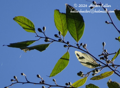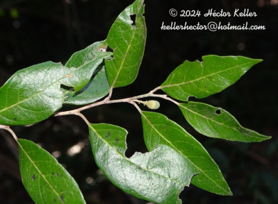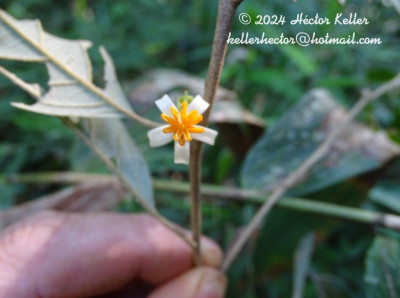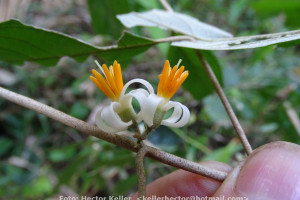 Árboles hasta de 15 m de alto, ramas cinéreo-tomentosas, con escamas y tricomas estrellados. Hojas ovadas, ovado-oblongas o elíptico-lanceoladas, de 6-12 × 2,5-3,5 cm, subcartáceas, discoloras, base aguda o cuneada, ápice agudo a acuminado, cara adaxial con escamas a glabrescente, cara abaxial densamente estrellado-tomentosa, cinérea, nervios cubiertos de tricomas ferrugíneos o amarillentos; pecíolo de 6,5-10 mm de largo. Inflorescencia en racimos axilares de 1,5-3,5 cm de largo, con 1-5 flores, raquis castaño. Flores de 1-1,8 cm de largo, pedicelos de 3,5-5 mm de largo, bractéolas caducas en la porción media del pedúnculo; cáliz ca. 4-5 × 3-3,5 mm, truncado, castaño-amarillento, con tricomas amarillos y castaños esparcidos sobre un indumento cinéreo de escamas y tricomas estrellados; corola con tubo ca. 1,5 mm de largo, lóbulos reflexos de 11-13,5 × 1,5-2,5 mm; estambres de 8,5-9,5 mm de largo, filamentos pubescentes, anteras ca. 6 mm de largo, con tricomas estrellados en el margen; ovario de 1,5 mm de largo, estilo filiforme, glabro. Fruto una drupa elipsoide u obovoide, de 1,5-1,7 × 1-1,1 cm, con el cáliz persistente.