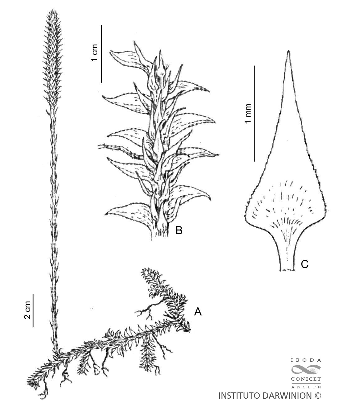 A. Planta. B. Detalle del eje postrado. C. Esporofilo.
