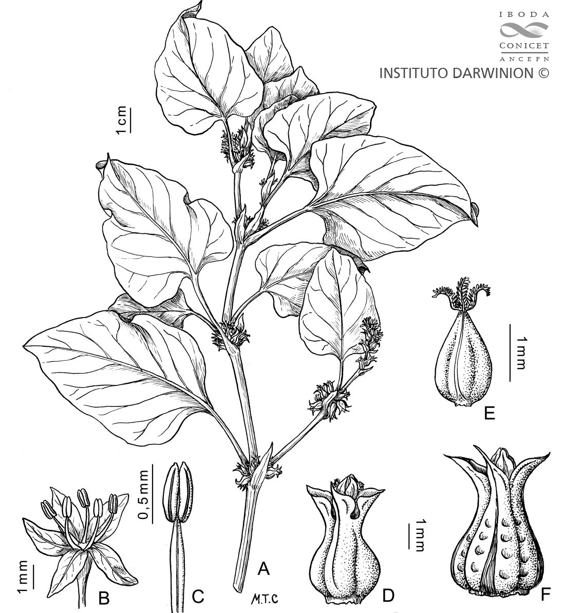 Hierbas anuales de alrededor de 50 cm de alto, glabras; tallos cilíndricos, huecos. Òcreas de 2 mm de largo; hojas ovado deltoides, de (1,5-)4-9 × (1,5-)3-6 cm; pecíolos de (0,5-)2-5 cm de largo. Inflorescencia en fascículos axilares, los superiores áfilos. Flores estaminadas pediceladas, con pedicelos hasta de 3 mm de largo; los inferiores frondosos, flores pistiladas o perfectas subsésiles. Aquenios triquetros, incluidos en el perigonio foveolado en su mitad superior, los tépalos del ciclo externo de 0,5 cm de largo, terminando en 3 dientes espinescentes de alrededor de 0,25 cm de largo, curvos hacia afuera, los del ciclo interno de 0,3 cm de largo, con dientes de 0,1 cm de largo y erguidos.