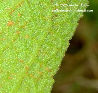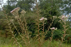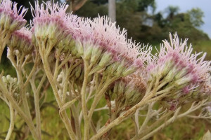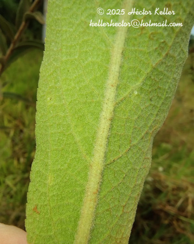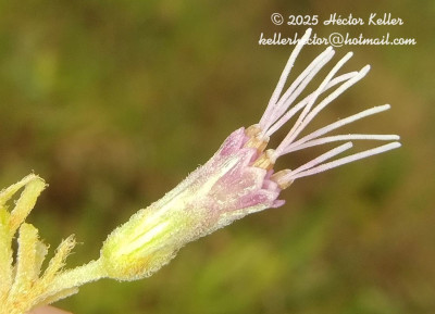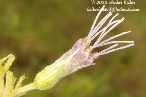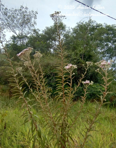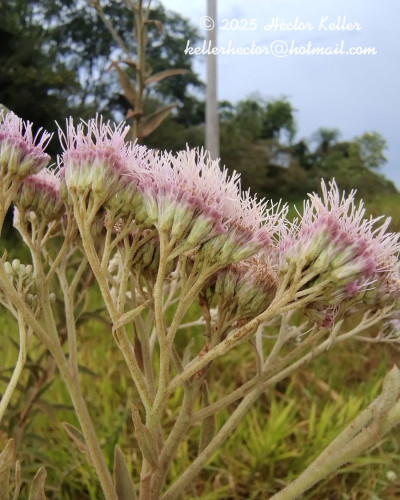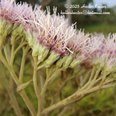 Subarbustos o arbustos de 1,5-2,5 m de alto, ramosos, con ramas tomentulosas o velutinas. Hojas alternas, cortísimamente pecioladas, láminas lanceoladas o elíptico-lanceoladas, de 4-12 × 1-3 cm, enteras o con dientes diminutos en el margen, 3-nervadas en la base, cortamente pubescentes, con glándulas en la haz y velutinas en el envés. Capítulos dispuestos en cimas corimbiformes. Involucro acampanado ca. 5 × 2,5-3 mm; filarios pocos, en 3 series, gradualmente más cortos, los externos ovados, los internos oblongos, obtusos, todos pubescentes en el dorso. Flores 5, corolas purpúreas. Aquenios glabros. Papus amarillento.