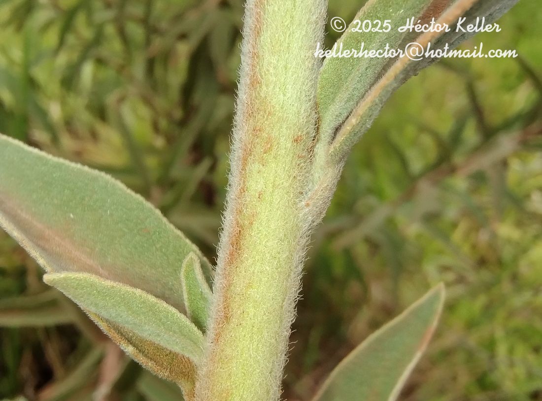 Subarbustos o arbustos de 1,5-2,5 m de alto, ramosos, con ramas tomentulosas o velutinas. Hojas alternas, cortísimamente pecioladas, láminas lanceoladas o elíptico-lanceoladas, de 4-12 × 1-3 cm, enteras o con dientes diminutos en el margen, 3-nervadas en la base, cortamente pubescentes, con glándulas en la haz y velutinas en el envés. Capítulos dispuestos en cimas corimbiformes. Involucro acampanado ca. 5 × 2,5-3 mm; filarios pocos, en 3 series, gradualmente más cortos, los externos ovados, los internos oblongos, obtusos, todos pubescentes en el dorso. Flores 5, corolas purpúreas. Aquenios glabros. Papus amarillento.