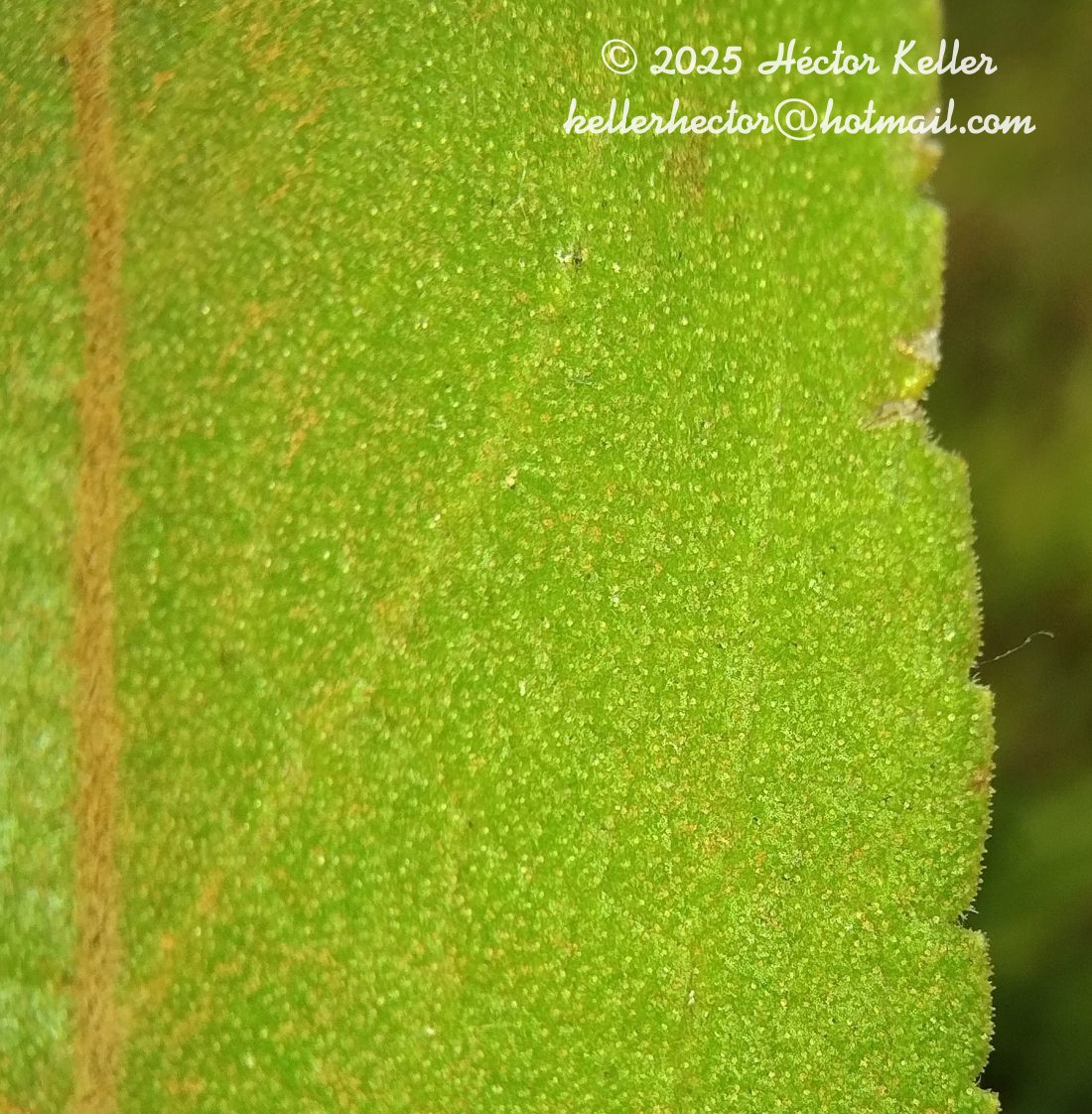 Subarbustos o arbustos de 1,5-2,5 m de alto, ramosos, con ramas tomentulosas o velutinas. Hojas alternas, cortísimamente pecioladas, láminas lanceoladas o elíptico-lanceoladas, de 4-12 × 1-3 cm, enteras o con dientes diminutos en el margen, 3-nervadas en la base, cortamente pubescentes, con glándulas en la haz y velutinas en el envés. Capítulos dispuestos en cimas corimbiformes. Involucro acampanado ca. 5 × 2,5-3 mm; filarios pocos, en 3 series, gradualmente más cortos, los externos ovados, los internos oblongos, obtusos, todos pubescentes en el dorso. Flores 5, corolas purpúreas. Aquenios glabros. Papus amarillento.