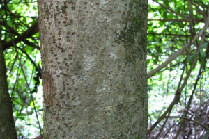 Arbustos o árboles hasta de 10 m de alto; ramas leñosas, con ramitas delgadas, rectas, dísticas, de 10-30 cm de largo. Pecíolos rojizos, de 1-3 mm de largo, con pelos glandulares en los costados; láminas ovadas a ovado-lanceoladas, de 10- 40 × 15-40 mm, atenuadas en la base u obtusas, acuminadas, generalmente mucronuladas, a veces marginadas, discoloras; estípulas ca. 1 mm de largo. Inflorescencias estaminadas y pistiladas fasciculadas, en ramitas acortadas, con 1-2 flores, las estaminadas largamente pedunculadas; pedúnculos engrosados en el ápice, los estaminados de 2-3 mm de largo, los pistilados de 10-14 mm de largo; brácteas ovadolanceoladas, pequeñas. Flores estaminadas con 6 sépalos, distribuidos en 2 ciclos, ca. 1 mm de largo, obtusos, los 3 externos ovados, los internos anchamente ovados, 1- nervados; glándulas 3, globosas; estambres 3, filamentos soldados, anteras horizontales, mucronadas, de dehiscencia longitudinal. Flores pistiladas con 6 sépalos en 2 ciclos, de 1-1,5 mm de largo, semejantes a los estaminados; disco cupuliforme, 6-lobulado, de borde dentado; ovario subgloboso, 3-lobulado, 3-locular; estilos 3, bífidos, reflexos. Cápsulas oblatas, ca. 5 mm de diámetro, verdosas. Semillas plano-convexas, de 2,5-3 × ca. 2 mm, castaño-rojizas.
