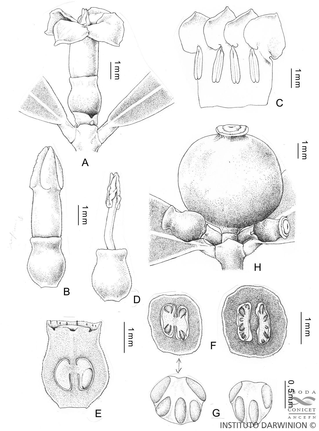 Observaciones: Las escasas colecciones de esta especie presentan flores y frutos en marzo y abril.