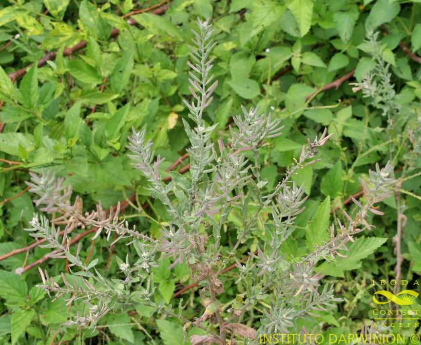 Hierbas anuales, raramente bienales, densamente pubescentes. Tallos erectos, a menudo solitarios desde la base, ramificados en la parte superior, de (30-)40-90(-110) cm de alto, pubescentes, con tricomas 3-7-radiados, de 0,1-0,4 mm de largo, a veces mezclados en la zona proximal con tricomas suaves, simples o 2-radiados, hasta de 1,2 mm de largo. Hojas basales no rosuladas, tempranamente marchitas; hojas caulinares medias sésiles, auriculadas a amplexicaules, oblongas a lanceoladas, de 2-8(-15) × 0,5-3(-5) cm, pubescentes, con tricomas 4-8-radiados, de 0,1-0,4 mm de largo, a veces mezclados con tricomas suaves, simples o 2-radiados, hasta de 1 mm de largo. Racimos alargados considerablemente durante la fructificación; pedicelos fructíferos horizontales a divaricado-ascendentes, densamente pubescentes, de (2-)5-12(-15) mm de largo. Sépalos oblongos, verdes a purpúreos, densamente pubescentes, de 1,5-2,5 × 0,5-1 mm; pétalos blancos, oblanceolados, de 1-2,5(-3,5) × 0,3-0,7(-1) mm, rara vez muy breves o ausentes; filamentos de 1,5-2,5 mm de largo; anteras oblongoides, de 0,4-0,8 mm de largo; óvulos (120-)150-250. Frutos angostamente oblongoides a lineares, de 0,8-1,5(-2) cm × 1,5-2 mm; valvas densamente pubescentes, con tricomas subsésiles; estilo de 0,2-0,6(-0,8) mm de largo. Semillas oblongoides, 2-seriadas o multiseriadas, de 0,4-0,55(-0,65) × 0,25- 0,35(-0,4) mm.