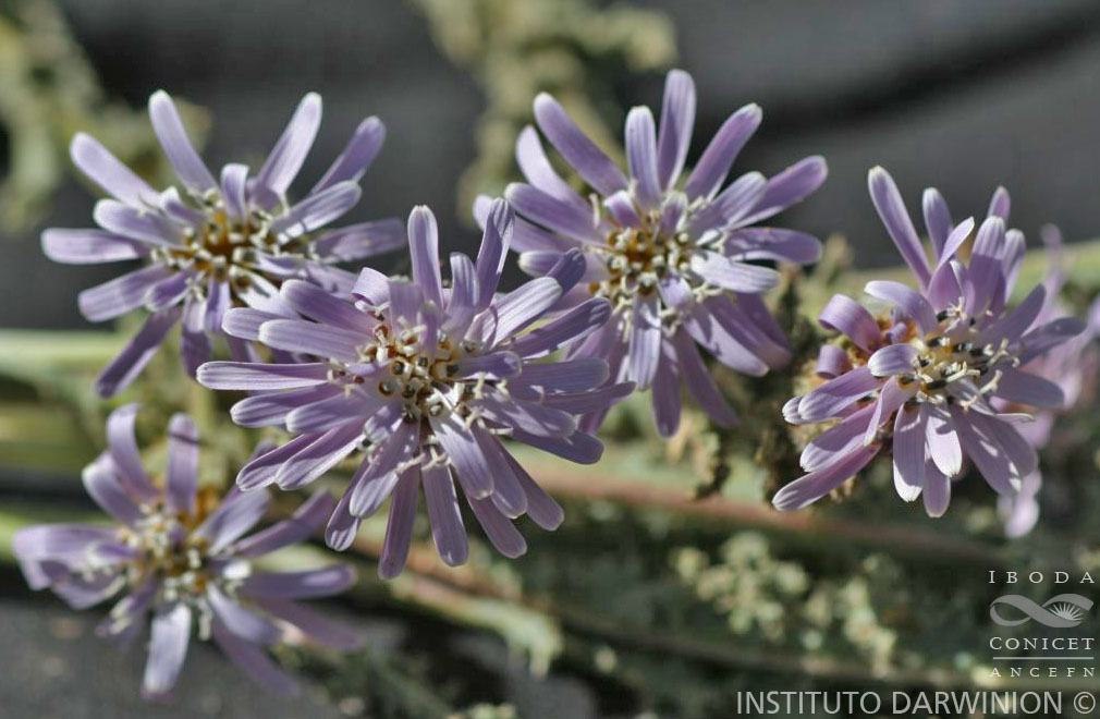 Hierbas caulescentes, de 7-40 cm de alto, densamente glanduloso-pubescentes. Hojas inferiores dispuestas en roseta, generalmente rodeadas por restos de pecíolos de hojas viejas y secas, largamente pecioladas, lanceoladas a oblanceoladas, de 3-12 × 0,5-3 cm, atenuadas en la base, agudas en el ápice, sinuadas, crenado-dentadas o pinnatisectas, margen crespo y retorcido, irregularmente denticulado, con cilias espiniformes, glanduloso-pubescentes o glabras en ambas caras; hojas superiores numerosas a escasas, ovado- u oblongo-lanceoladas. Capítulos solitarios o 2-20, formando una cima racemiforme laxa o densa y espiciforme. Involucro de (15-)20-40 × 10-20 mm; filarios 3-5-seriados, angostamente escariosos en el margen, glanduloso-pubescentes, los externos oblongo- u ovadolanceolados, enteros o espinuloso-ciliados en el margen, los internos lanceolados. Flores 20-60, corola azul, blanca, amarillenta, violácea, verdoso-violácea, lilacina, las del margen con tubo de 11-15 mm de largo, labio exterior de 6-10 mm de largo. Aquenios truncados en el ápice, seríceo-velludos, con tricomas blanquecinos o dorados. Papus de 15-20 mm de largo, leonado.