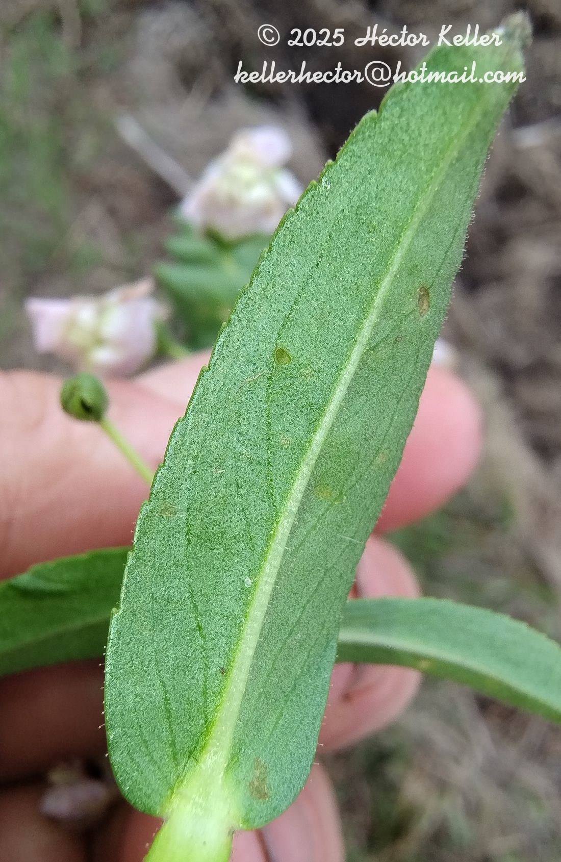 Hierbas perennes, densamente híspido-glandulares, hasta de 80 cm de alto. Hojas opuestas, sésiles, láminas ovadas o elípticas, de 4-10 × 1(-3) cm, margen ligeramente serrado o crenado, nervaduras notorias en cara abaxial. Flores solitarias en la axila de brácteas foliáceas, elípticas u ovadas, las basales ca. 3 × 2 cm, las apicales ca. 1 × 0,5 cm, agrupadas formando racimos terminales de 20-40 cm de largo; pedicelos largos, ca. 2 cm, arqueados en frutificación; bractéolas lineares, muy breves, ca. 0,1 mm. Cáliz 5- lobado, cada lóbulo de 0,3-0,45 cm de largo. Corola de 0,8-1 cm de largo, de color azul claro con manchas violetas, tubo breve. Cápsulas globosas, ca. 0,6 × 0,6 cm, pardo amarillentas.