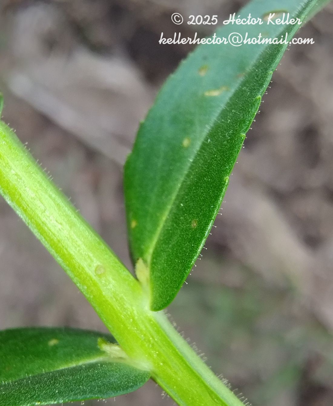 Hierbas perennes, densamente híspido-glandulares, hasta de 80 cm de alto. Hojas opuestas, sésiles, láminas ovadas o elípticas, de 4-10 × 1(-3) cm, margen ligeramente serrado o crenado, nervaduras notorias en cara abaxial. Flores solitarias en la axila de brácteas foliáceas, elípticas u ovadas, las basales ca. 3 × 2 cm, las apicales ca. 1 × 0,5 cm, agrupadas formando racimos terminales de 20-40 cm de largo; pedicelos largos, ca. 2 cm, arqueados en frutificación; bractéolas lineares, muy breves, ca. 0,1 mm. Cáliz 5- lobado, cada lóbulo de 0,3-0,45 cm de largo. Corola de 0,8-1 cm de largo, de color azul claro con manchas violetas, tubo breve. Cápsulas globosas, ca. 0,6 × 0,6 cm, pardo amarillentas.