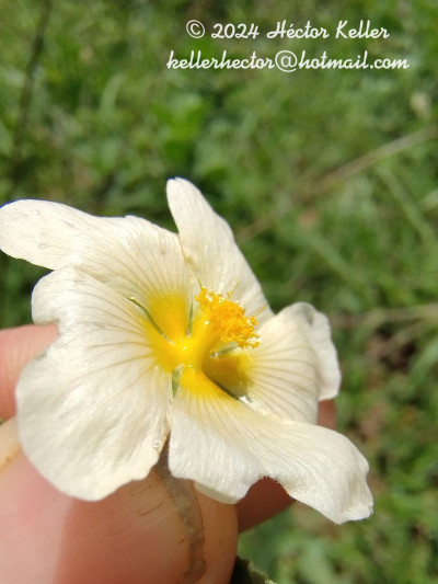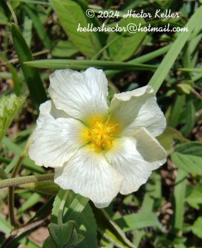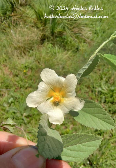 Hierba perenne hasta 50 cm de altura, pubescente, toda la planta cubierta con pelos estrellados muy pequeños, densos. Tallo estrellado-pubescente y con pelos simples de 1 mm de largo esparcidos, caducos, presentes en partes jóvenes. Estípulas 4-5 × 0,5-1 mm, 1-nervadas y con el margen ciliado; pecíolo de 3-5 mm de largo; lámina elíptica a algo ovada, de 30 × 20 mm a 40 × 15 mm, base subcordada, ápice subagudo, margen dentado hasta la base, ciliado; epifilo por lo común pubescente, pero en hojas basales suele presentar pelos simples ca. 1 mm de largo, algo adpresos, hipofilo con pelos estrellados densos, algo mayores que los del epifilo. Flores solitarias, axilares, pedúnculo de 25-40 mm de largo, articulado ca. 10 mm por debajo de la flor. Cáliz pubescente de 10 mm de largo, con 10 nervios sobresalientes en la base, lóbulos triangulares de 7 × 7 mm, margen ciliado, y márgenes de dos lóbulos contiguos replegados. Corola color crema, pétalos asimétricos, 15 × 15 mm, uña pilosa. Tubo estaminal de 5 mm de largo, glabro, anteras apicales. Mericarpos 8, trígonos, múticos, glabros, 3 × 2 mm, 1 mm apical liso y 2 mm basales reticulados, tanto en la cara dorsal como en las dos laterales. Semilla péndula, glabra.