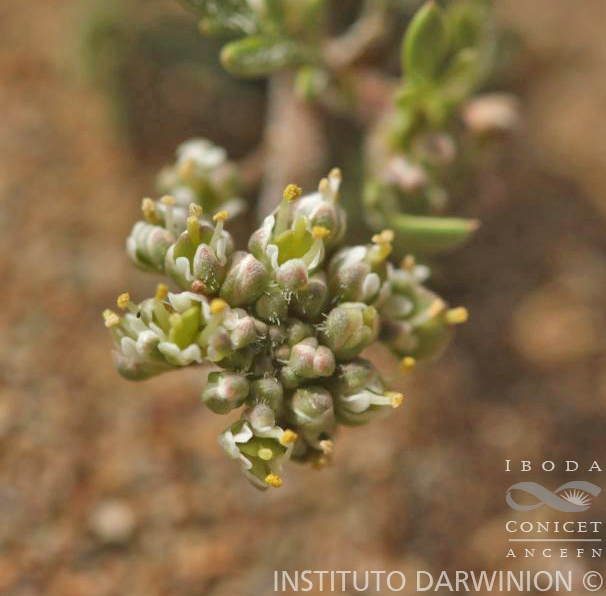 por la combinación de hábito perenne, ramas decumbentes, hojas