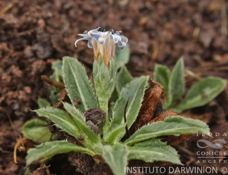 Hierbas acaules, de 1,5-12 cm de alto, glabras o levemente glanduloso-pubescentes, a veces formando matas por división de rizomas. Hojas inferiores ausentes a muy numerosas, dispuestas en roseta, sésiles o con corto pecíolo envainador y escarioso; láminas oblanceoladas u oblanceolado-espatuladas, de 0,5-4 × 0,3- 2,2 cm, atenuadas en la base, obtusas o semiagudas en el ápice, enteras, sinuadas a más o menos profundamente lobadas, partidas o liradas en el margen, con lóbulos ovados, agudos u obtusos, enteros o dentados, ciliados en el margen, glabras en ambas caras o glanduloso-pubescentes; hojas superiores 2-3, casi ocultas por las hojas inferiores, bracteiformes, lineares a lanceoladas. Capítulos solitarios, sésiles o sobre 1-5 escapos cortos. Involucro de 11-35 × 5-30 mm; filarios 3-6-seriados, cortamente mucronados en el ápice, escariosos en el margen, glabros o glanduloso-pubescentes en la parte superior, los externos, lanceolados a ovados, oblongos, o pandurados, a veces denticulado-espinosos en el ápice, los internos oblongo-lanceolados. Flores 8-40, corola azul, lilacina, rojiza o a veces blanca, amarillenta o castaña, las del margen con tubo de 6- 30 mm de largo, labio exterior de 5-12 mm de largo. Aquenios truncados o cortamente rostrados en el ápice, glabros o levemente glanduloso-pubescentes, a veces estrigosos, con tricomas dorados. Papus de 8-23 mm de largo, leonado.
