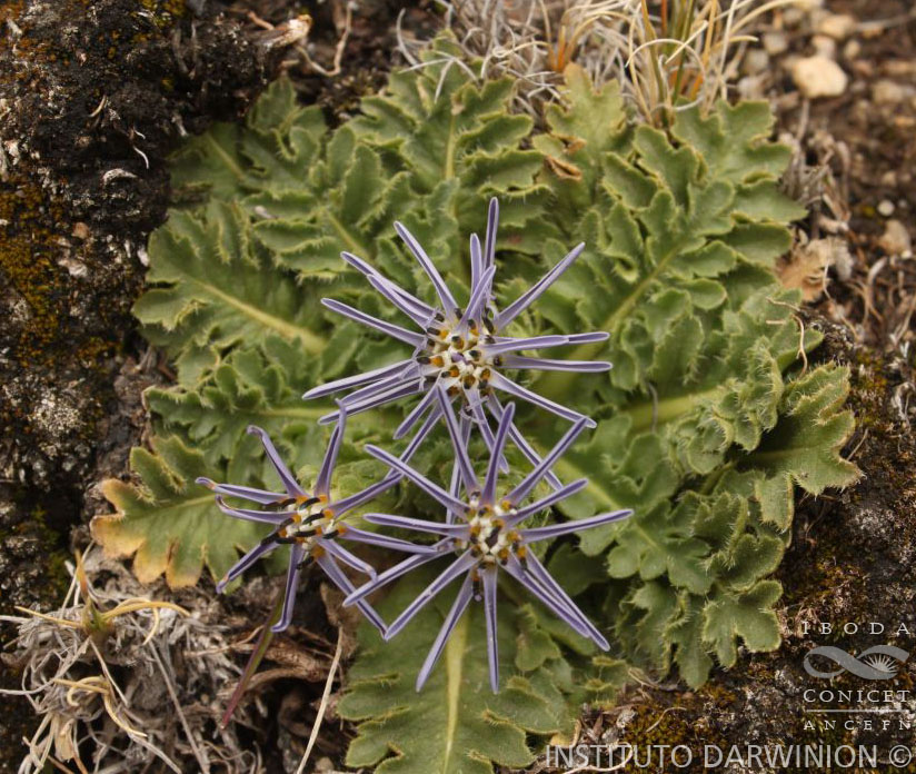 Hierbas acaules, de 1,5-12 cm de alto, glabras o levemente glanduloso-pubescentes, a veces formando matas por división de rizomas. Hojas inferiores ausentes a muy numerosas, dispuestas en roseta, sésiles o con corto pecíolo envainador y escarioso; láminas oblanceoladas u oblanceolado-espatuladas, de 0,5-4 × 0,3- 2,2 cm, atenuadas en la base, obtusas o semiagudas en el ápice, enteras, sinuadas a más o menos profundamente lobadas, partidas o liradas en el margen, con lóbulos ovados, agudos u obtusos, enteros o dentados, ciliados en el margen, glabras en ambas caras o glanduloso-pubescentes; hojas superiores 2-3, casi ocultas por las hojas inferiores, bracteiformes, lineares a lanceoladas. Capítulos solitarios, sésiles o sobre 1-5 escapos cortos. Involucro de 11-35 × 5-30 mm; filarios 3-6-seriados, cortamente mucronados en el ápice, escariosos en el margen, glabros o glanduloso-pubescentes en la parte superior, los externos, lanceolados a ovados, oblongos, o pandurados, a veces denticulado-espinosos en el ápice, los internos oblongo-lanceolados. Flores 8-40, corola azul, lilacina, rojiza o a veces blanca, amarillenta o castaña, las del margen con tubo de 6- 30 mm de largo, labio exterior de 5-12 mm de largo. Aquenios truncados o cortamente rostrados en el ápice, glabros o levemente glanduloso-pubescentes, a veces estrigosos, con tricomas dorados. Papus de 8-23 mm de largo, leonado.
