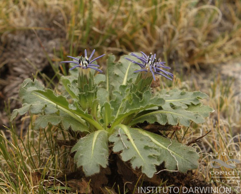 Hierbas acaules, de 1,5-12 cm de alto, glabras o levemente glanduloso-pubescentes, a veces formando matas por división de rizomas. Hojas inferiores ausentes a muy numerosas, dispuestas en roseta, sésiles o con corto pecíolo envainador y escarioso; láminas oblanceoladas u oblanceolado-espatuladas, de 0,5-4 × 0,3- 2,2 cm, atenuadas en la base, obtusas o semiagudas en el ápice, enteras, sinuadas a más o menos profundamente lobadas, partidas o liradas en el margen, con lóbulos ovados, agudos u obtusos, enteros o dentados, ciliados en el margen, glabras en ambas caras o glanduloso-pubescentes; hojas superiores 2-3, casi ocultas por las hojas inferiores, bracteiformes, lineares a lanceoladas. Capítulos solitarios, sésiles o sobre 1-5 escapos cortos. Involucro de 11-35 × 5-30 mm; filarios 3-6-seriados, cortamente mucronados en el ápice, escariosos en el margen, glabros o glanduloso-pubescentes en la parte superior, los externos, lanceolados a ovados, oblongos, o pandurados, a veces denticulado-espinosos en el ápice, los internos oblongo-lanceolados. Flores 8-40, corola azul, lilacina, rojiza o a veces blanca, amarillenta o castaña, las del margen con tubo de 6- 30 mm de largo, labio exterior de 5-12 mm de largo. Aquenios truncados o cortamente rostrados en el ápice, glabros o levemente glanduloso-pubescentes, a veces estrigosos, con tricomas dorados. Papus de 8-23 mm de largo, leonado.