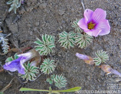 Hierbas acaules, perennes, de 4-5 cm de alto. Raíces adventicias, fibrosas; rizomas horizontales, cilíndricos, delgados, enangostados cada 1-2 cm; escamas nutricias imbricadas espiraladamente, cónicas, de 4 × 2 mm, blanquecinas, suculentas, de sección sub-plano-convexa, mácula anaranjada siempre presente. Hojas 2-7; estípulas hasta de 2 × 2,5 mm, adnatas al pecíolo, enangostadas hacia el ápice; pecíolos de 4-5 cm de largo, glabros; folíolos 10-12, obcordados, de ámbito cuadrado, de 3,5- 4 × 4,5-5 mm, ampliamente emarginados, verdosos, glaucos, de superficie glabra, márgenes ondulados, ciliados. Cimas 1-floras; pedúnculos más largos o iguales que el follaje, glabros; brácteas ovadas, agudas, hasta de 2 mm de largo, hialinas, glabras; pedicelos hasta de 3 mm de largo, pubescentes; sépalos de 5,5 × 2-2,5 mm, externamente pubescentes, internamente glabros. Flores hasta de 40 mm de diámetro; pétalos 3-5 veces el largo de los sépalos, unguiculados, rosados a violáceos, a veces con líneas y la garganta violácea. Cápsulas globosas, de 6-7 mm de diámetro; glabras o con pelos cortos simples o glandulares; carpelos con el interior pubescente, con 1-2 semillas. Semillas elipsoides, de 2 × 1 mm, asimétricas, costadas, ocres.