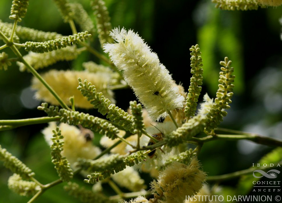 Arbustos apoyantes. Ramas glabras o levemente pubescentes; aguijones dispersos, recurvos, de 1-3 mm. Hojas con 5-9 (14)-yugadas; pecíolo glabro, con glándula sésil, elipsoide; raquis primario glabro; folíolos de 5-11 mm × 1-2 mm, agudos, con margen e hipofilo pilosos, principalmente sobre la base del nervio medio, 25-45 (60)-yugados. Inflorescencias espiciformes de 2-5 (9) cm × 1-1,5 cm a la antesis; pedúnculos generalmente de 5-15 mm; brácteas de 1 mm. Flores amarillas o blanquecinas, sésiles; cáliz 4-6-dentado, de 2 mm, pubescente; corola 5-dentada, de 3 mm, pubescente; estambres de 5-7 mm, anteras frecuentemente eglandulosas; ovario densamente piloso. Legumbres de 9-18 cm × 1,5-2,5 cm, rectas o levemente falcadas, mucronadas, con superficie reticulada. Semillas 7-8, de 10 mm, uniseriadas.