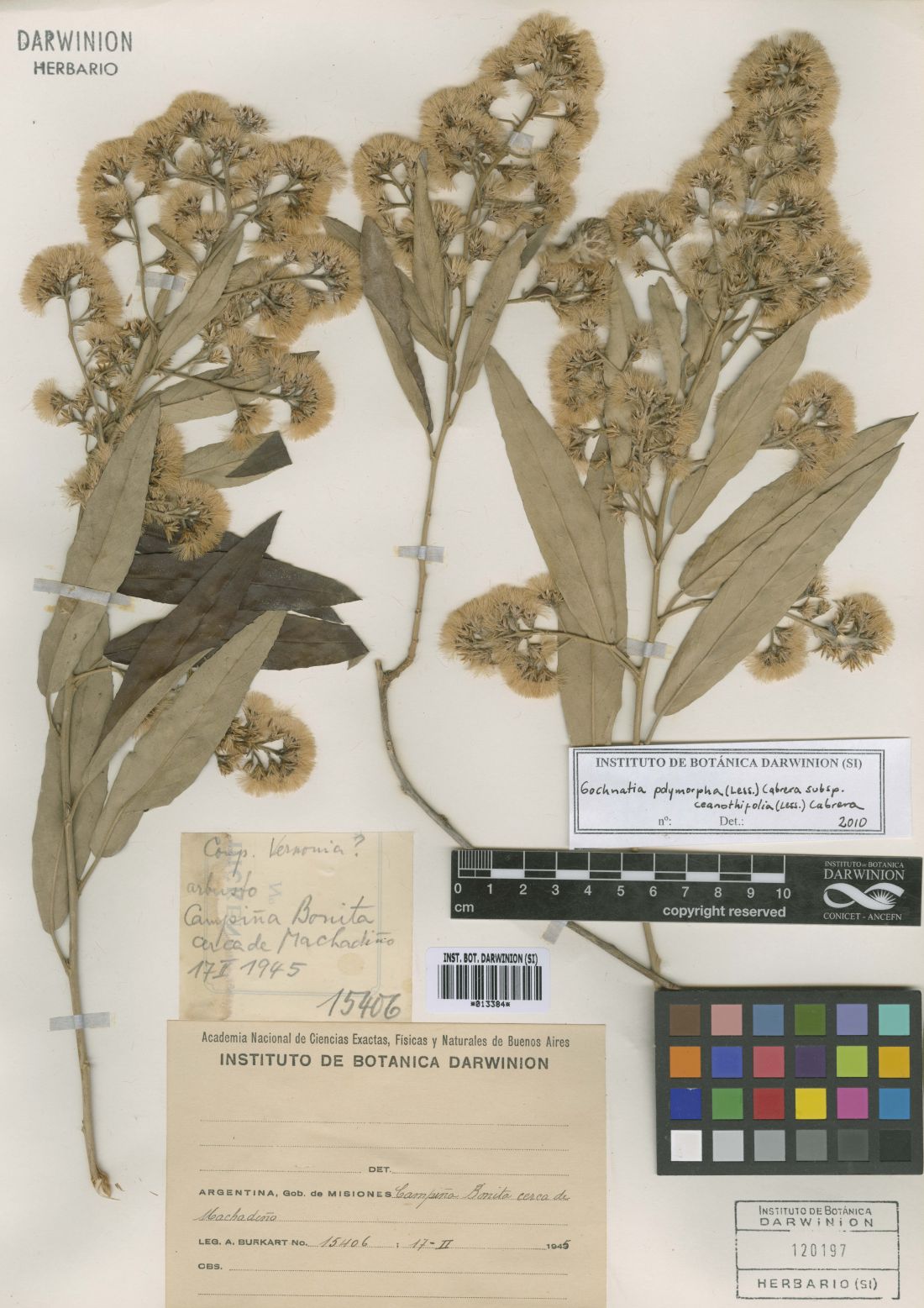 Árboles de 4-12 m de alto, ginodioicos, unas plantas todas perfectas y otras todas pistiladas; ramas densamente albotomentosas, hojosas hasta la inflorescencia. Hojas alternas, pecioladas, pecíolos de 1-2 cm de largo; láminas oblongolanceoladas, de 7-10 × 1,5-3 cm, redondeadas o ligeramente atenuadas en la base, agudo-mucronadas en el ápice, enteras o cortamente denticuladas en el margen, subcoriáceas, glabras y brillantes en la cara superior y densamente tomentosas en la cara inferior, con pelos malpigiáceos. Capítulos homógamos a veces heterógamos (con flores perfectas y pistiladas), numerosos, sobre pedúnculos de 3-10 mm de largo, dispuestos en panojas foliosas, amplias. Involucro acampanado, de 4-6 × 3-4 mm; filarios 4-seriados, los externos ovados, los internos lanceolados, todos ellos glabrescentes en el dorso y ciliados en el margen. Flores ca. 10, isomorfas, con corolas blanquecinas, tubulosas, profundamente 5-sectas, ca. 6 mm de largo, tubo ca.1,5-2 mm de largo, segmentos lineares, de 4- 4,5 mm de largo, recurvados, las pistiladas sin anteras. Aquenios turbinados, ca. 4 mm de largo, seríceo-pubescentes. Papus amarillento o rosado, formado por numerosas cerdas escabrosas, desiguales en longitud, las más largas hasta de 5 mm, plumosas en el ápice.
